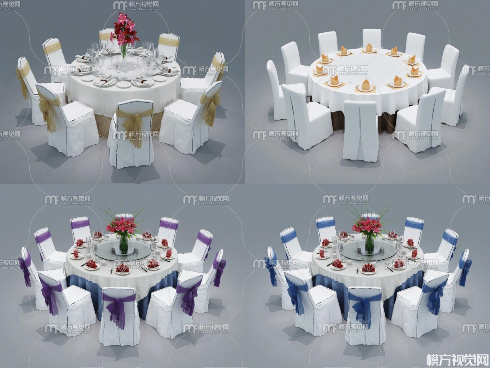 现代宴会厅圆形餐桌椅组合3D模型(ID:0038960)