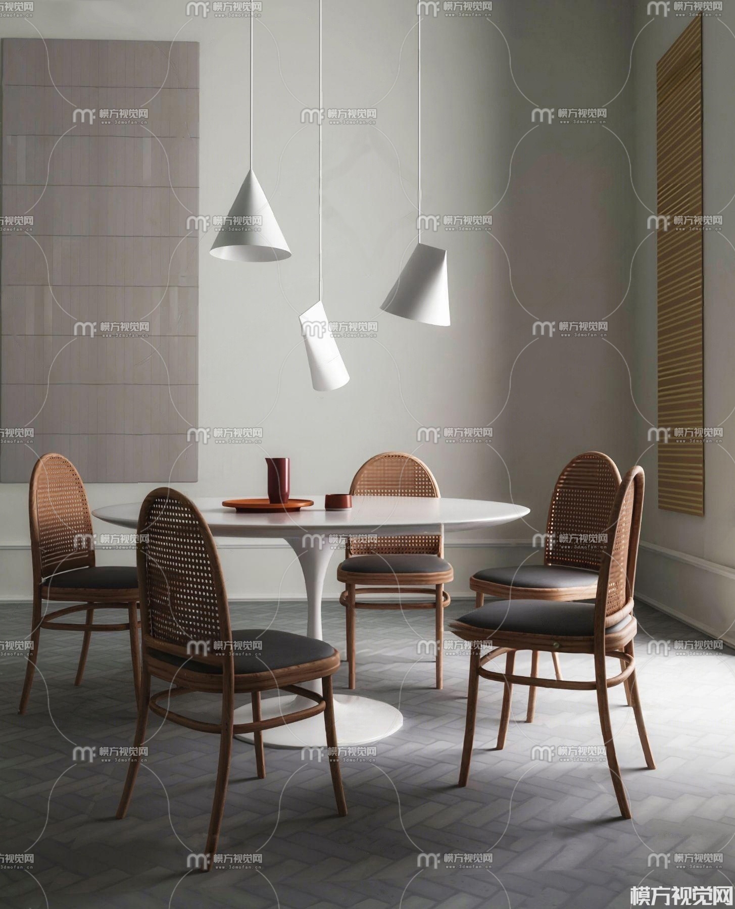 现代圆形餐桌椅组合3D模型(ID:0038961)