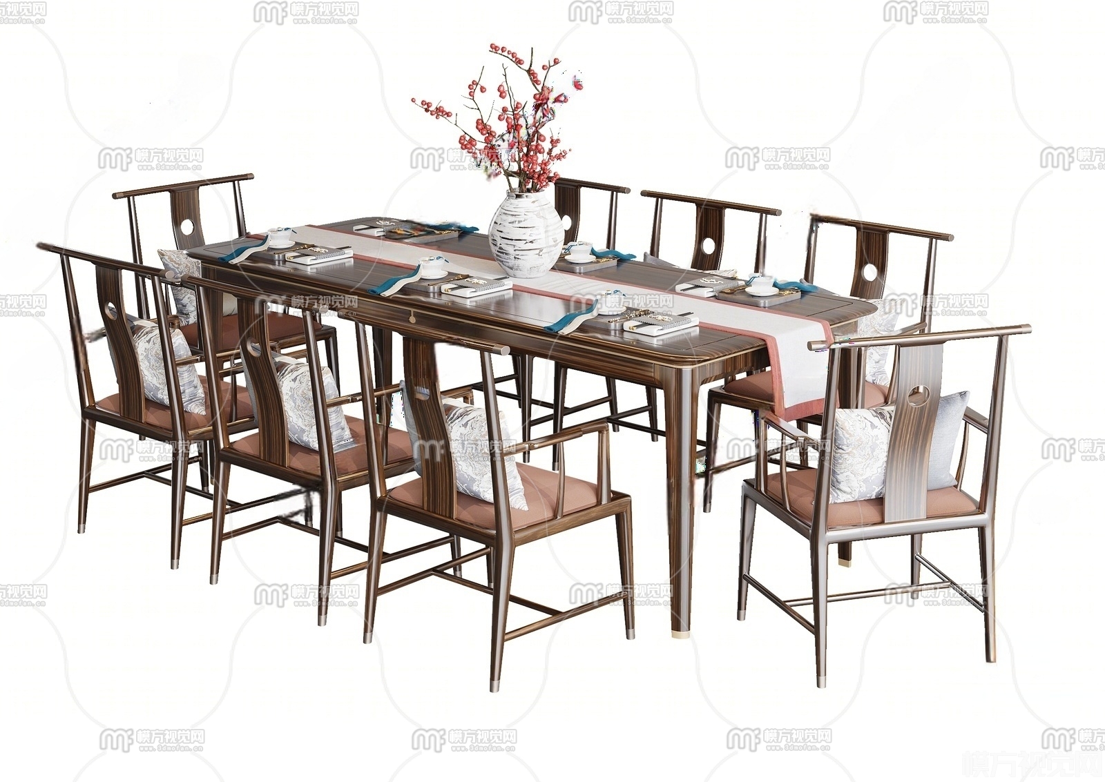 新中式餐桌椅组合3D模型(ID:0038982)