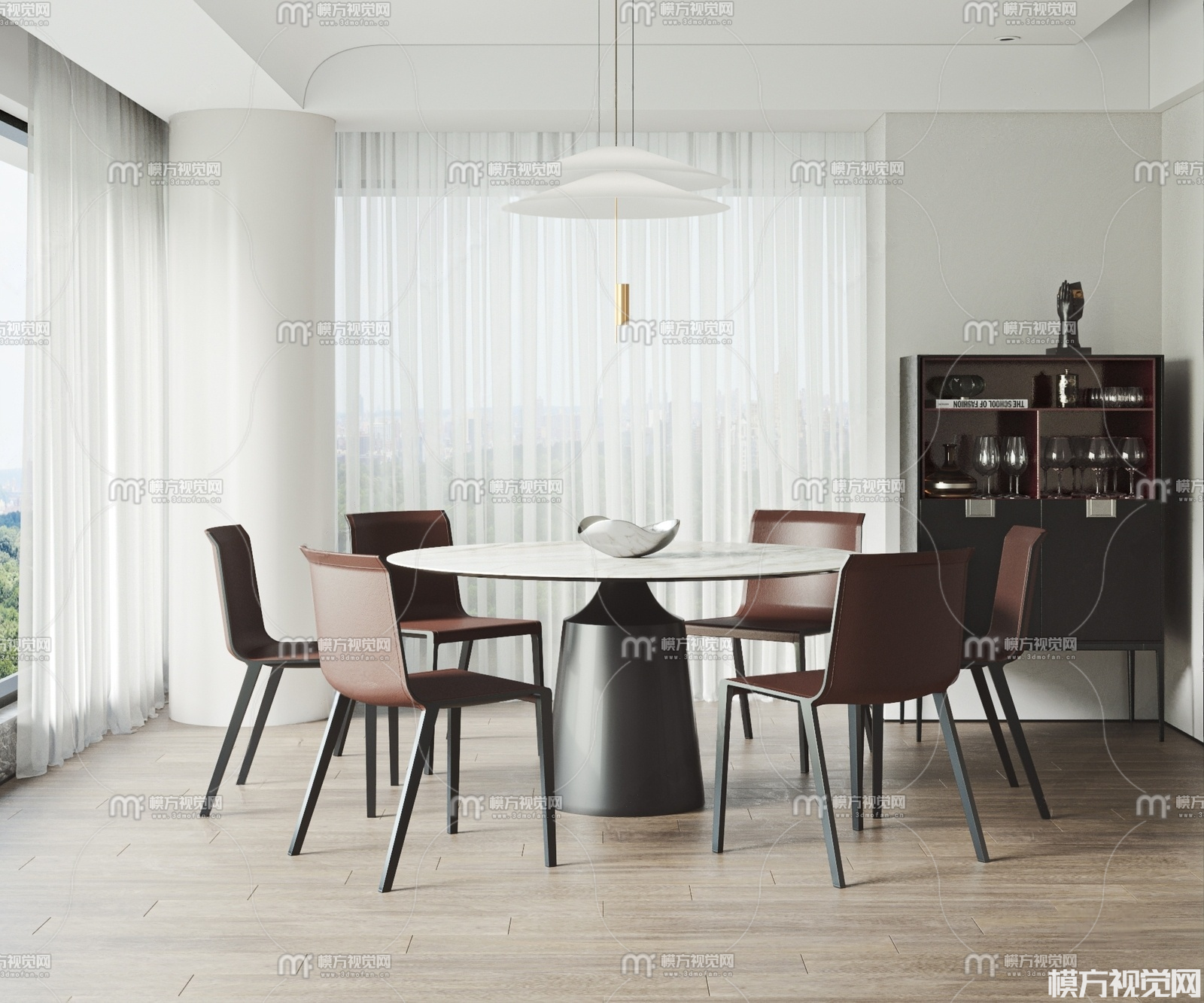 圆形餐桌椅组合3D模型(ID:0038986)