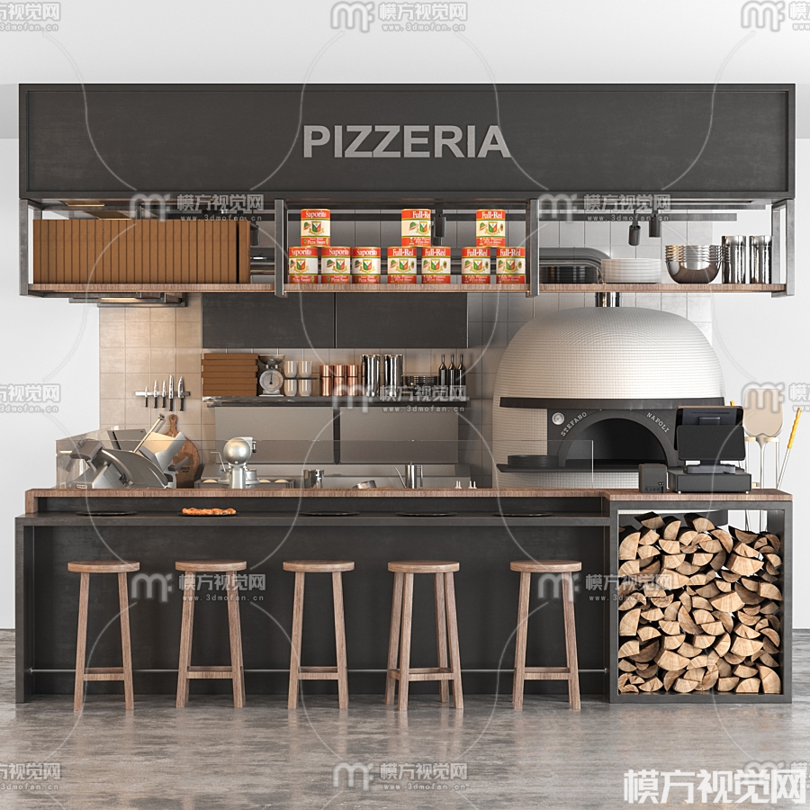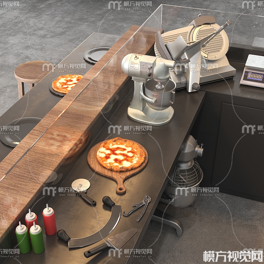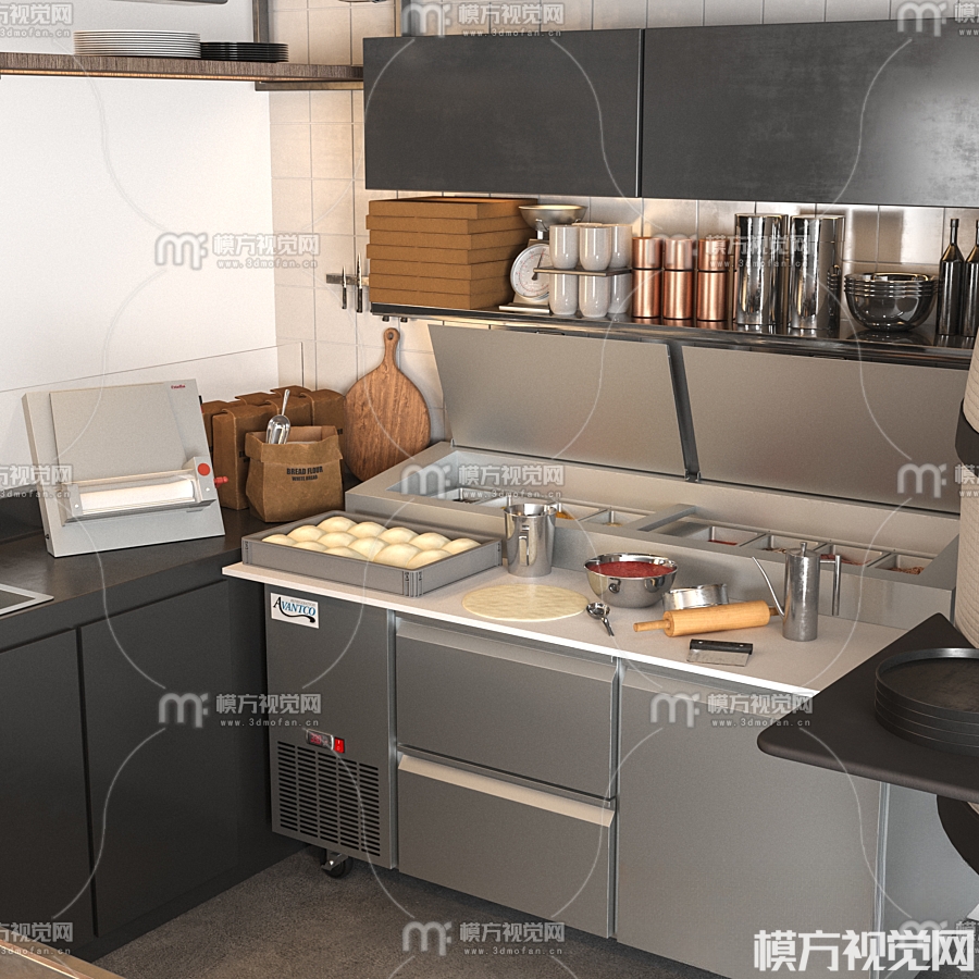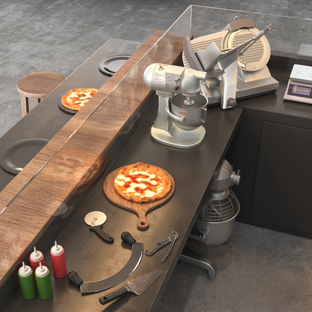 现代披萨店吧台操作台3D模型(ID:0039077)