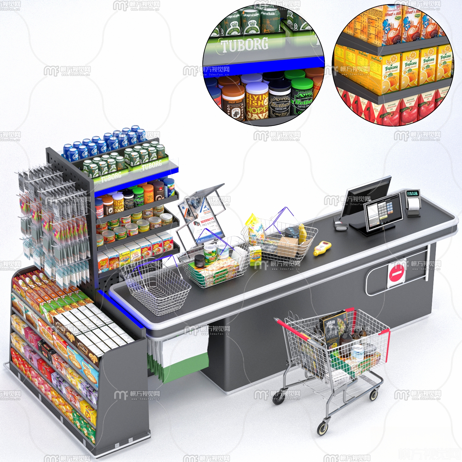 现代超市收银台货架3D模型(ID:0039166)