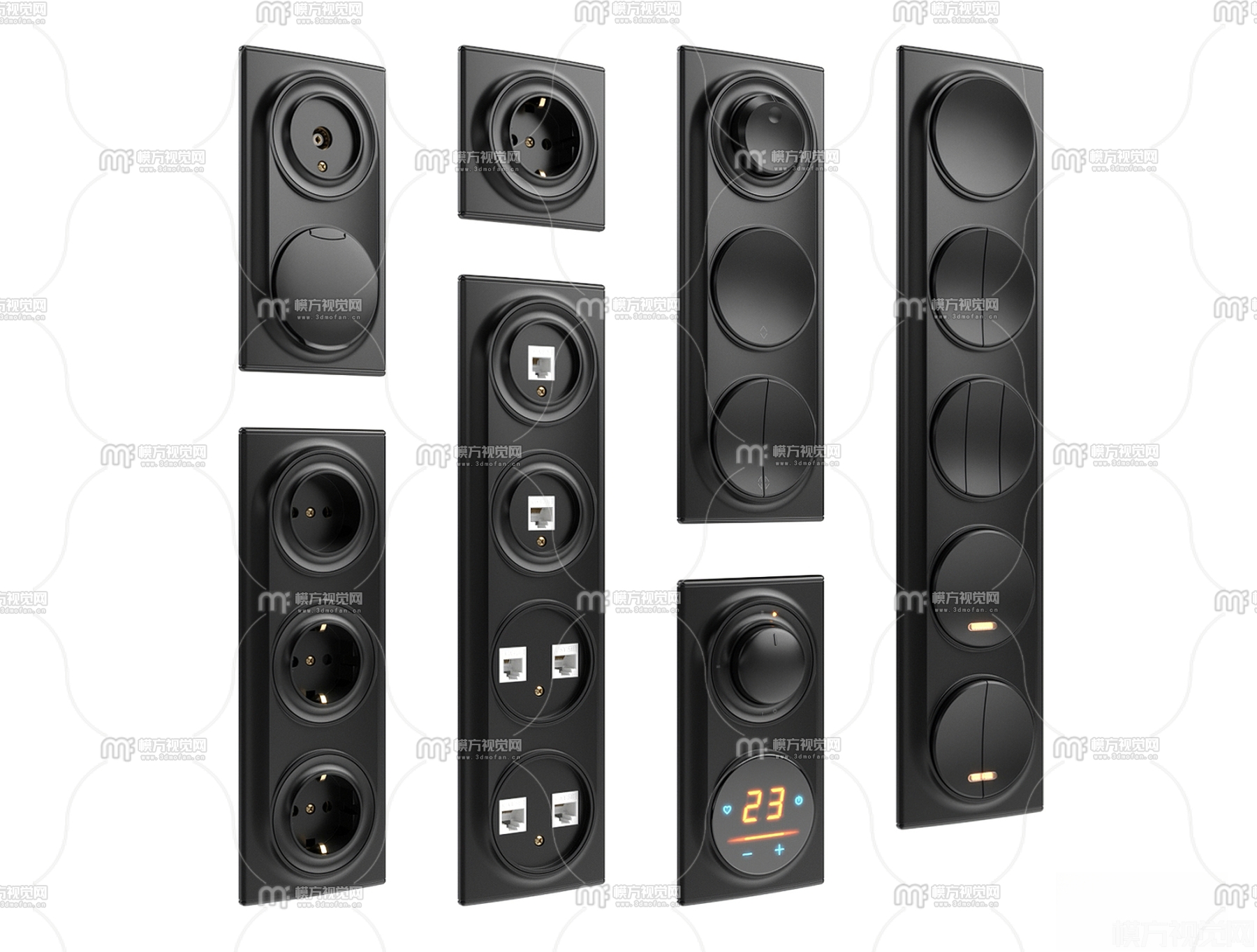 现代开关插座面板3D模型(ID:0039250)