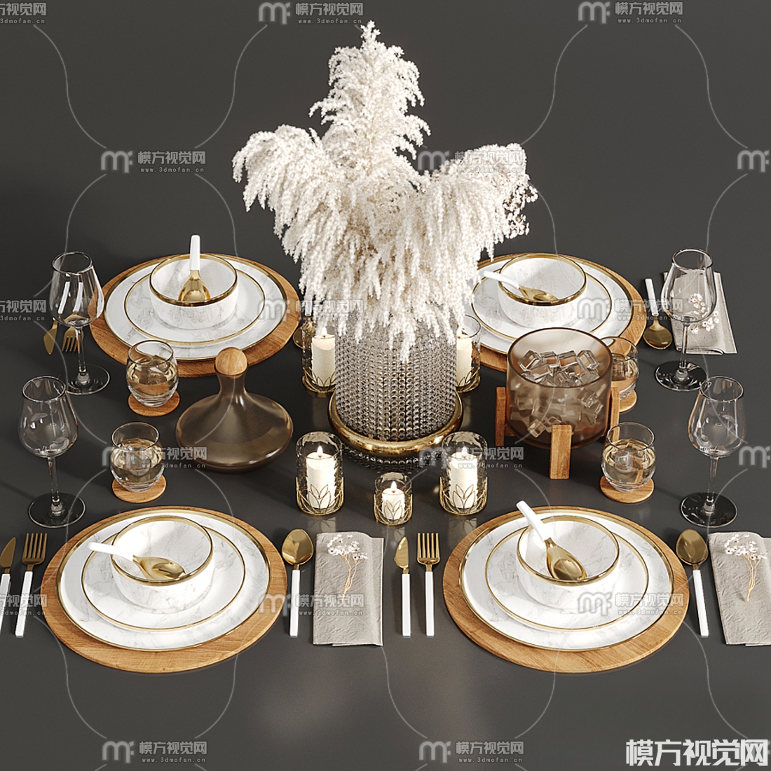 现代餐具摆件3D模型(ID:0039353)