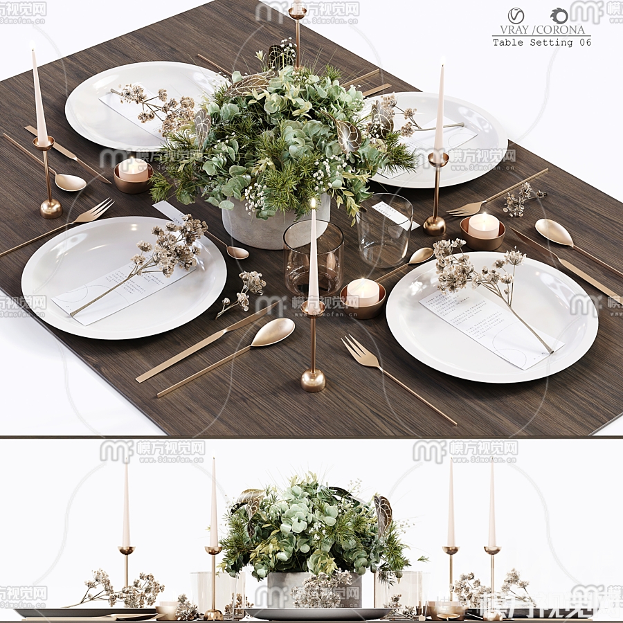 现代餐具摆件3D模型(ID:0039357)