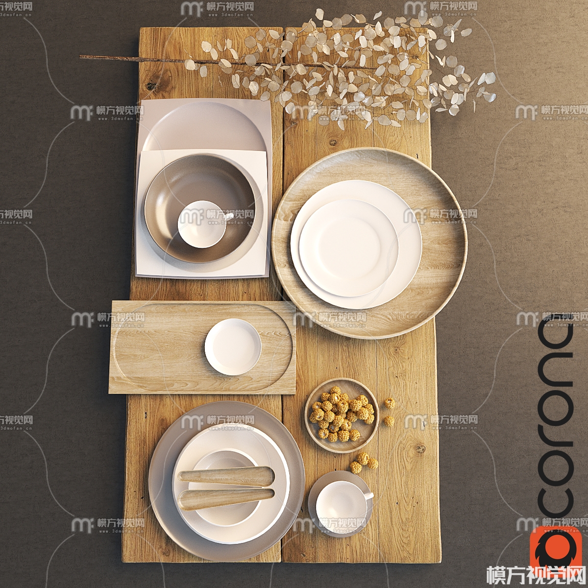 现代餐具摆件3D模型(ID:0039366)