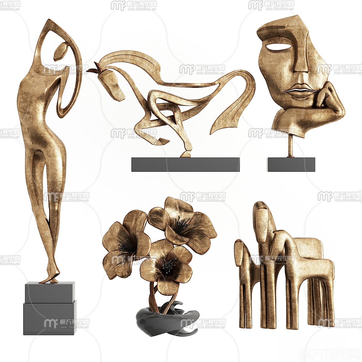 现代金属抽象雕塑摆件3D模型(ID:0039373)