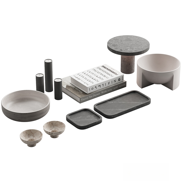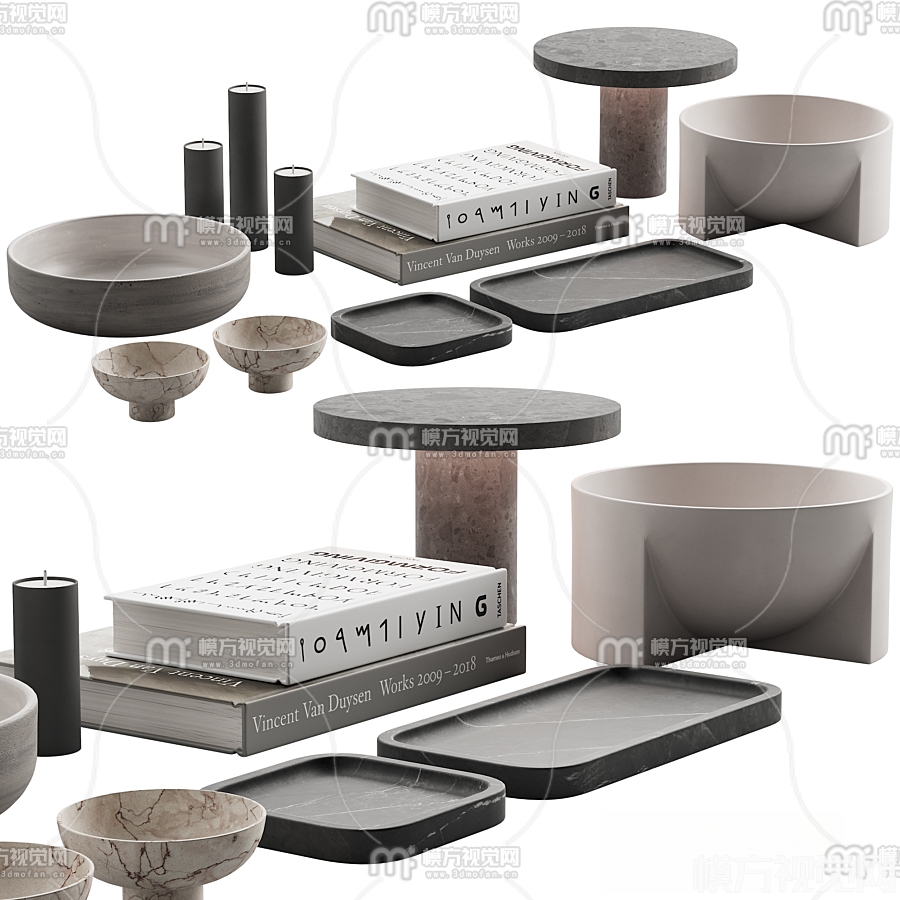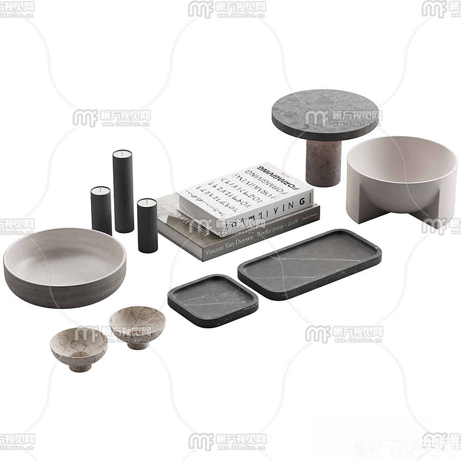 现代陶瓷碗边几装饰品组合3D模型(ID:0039378)