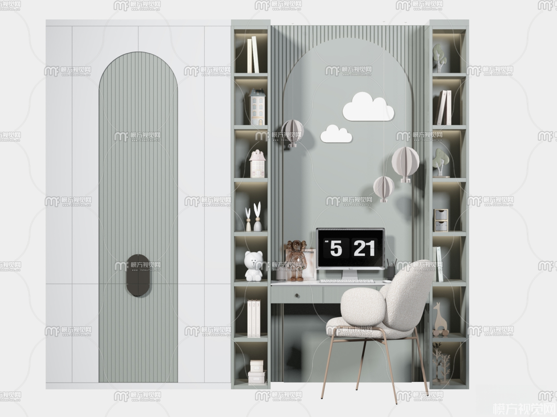 现代儿童书桌椅柜3D模型(ID:0039396)