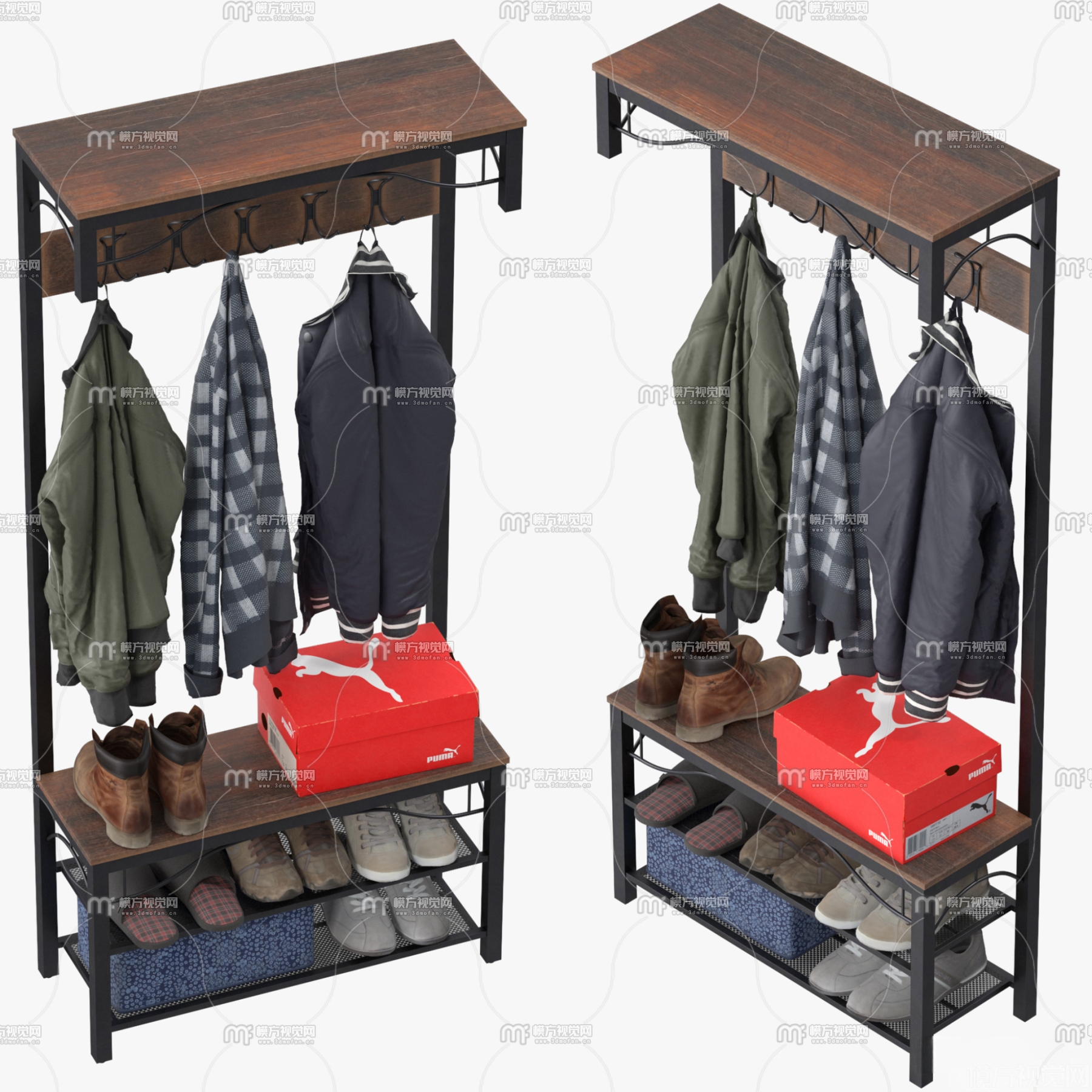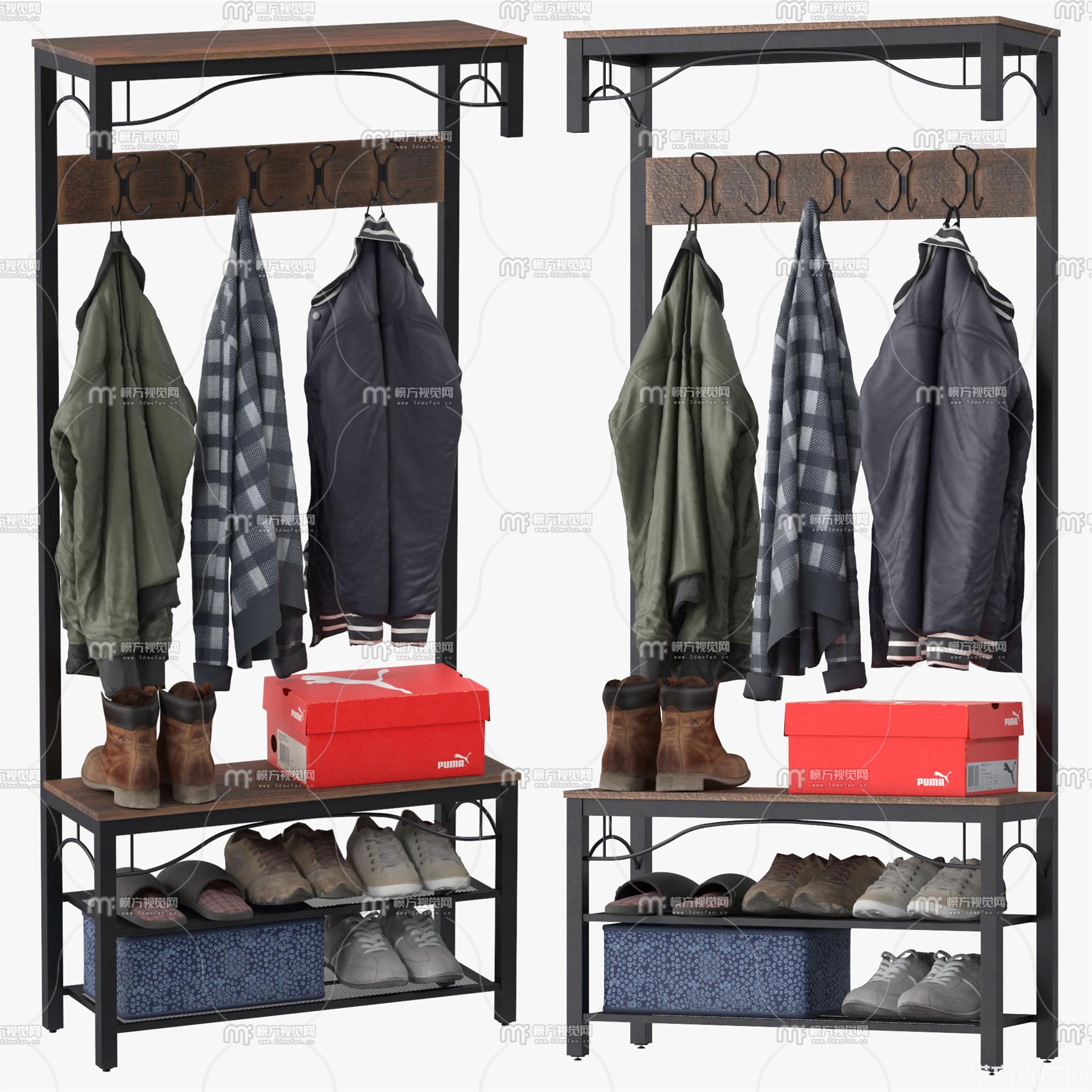 现代鞋柜衣服鞋子组合3D模型(ID:0039484)