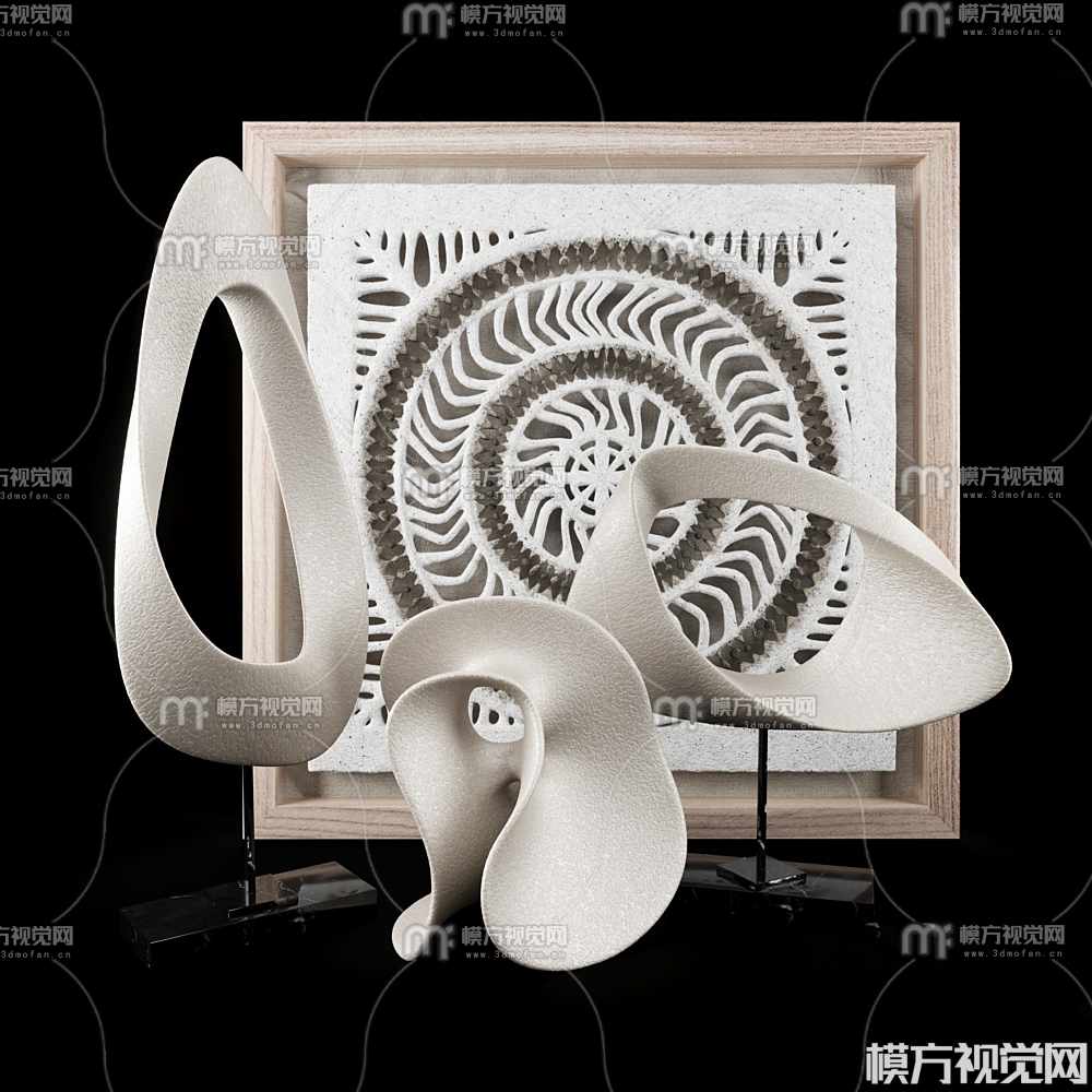 侘寂陶瓷雕塑摆件组合3D模型(ID:0039494)