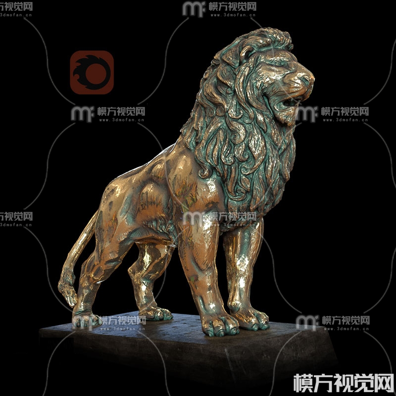铜狮子雕塑3D模型(ID:0039511)