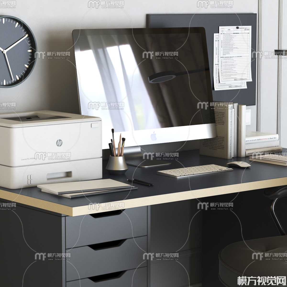 现代书桌椅3D模型(ID:0039596)