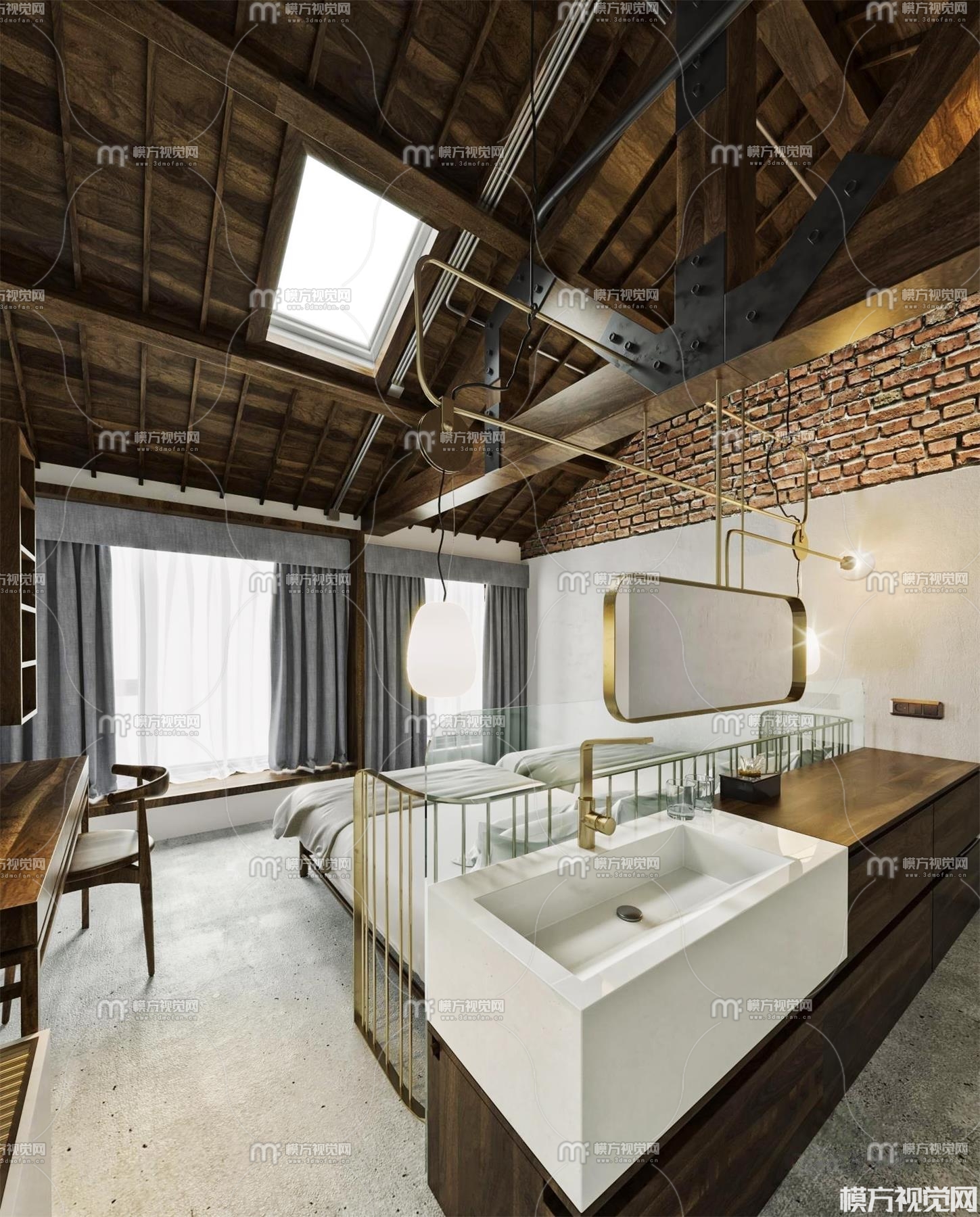 现代民宿客房3D模型(ID:0004019)
