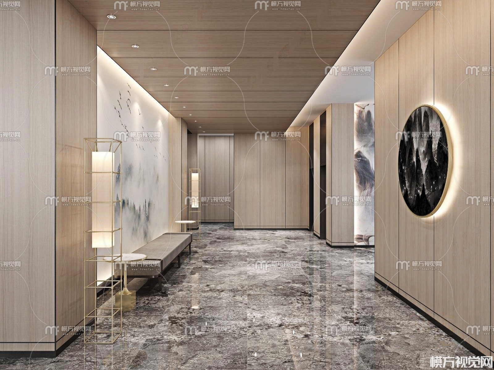新中式酒店过道3D模型(ID:0004025)