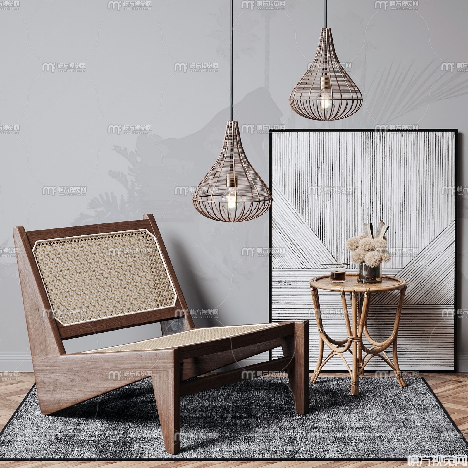 现代藤编休闲椅边几组合3D模型(ID:0000409)