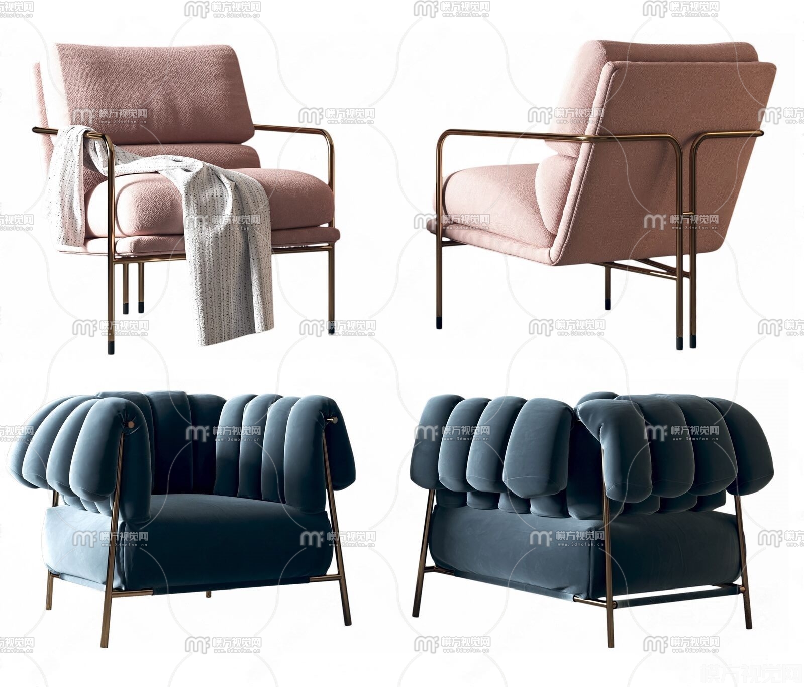 现代轻奢绒布单椅组合3D模型(ID:0000410)