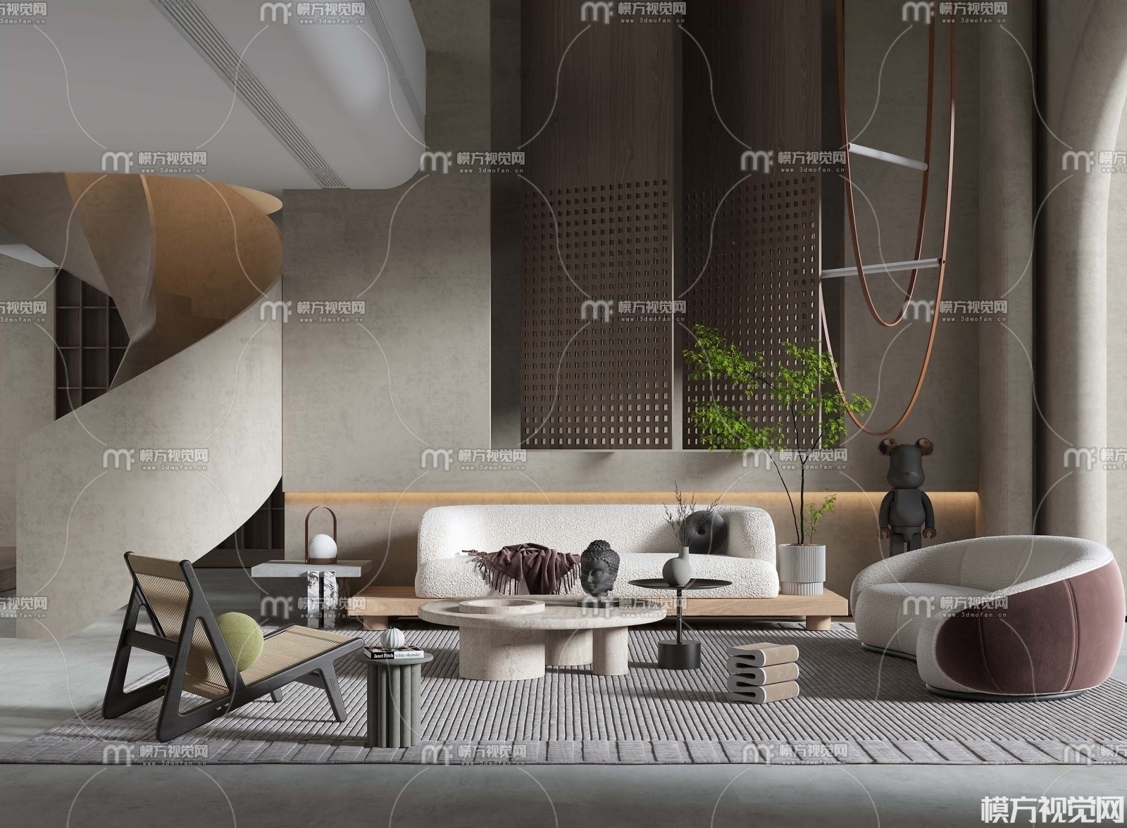 侘寂布艺沙发组合3D模型(ID:0004107)