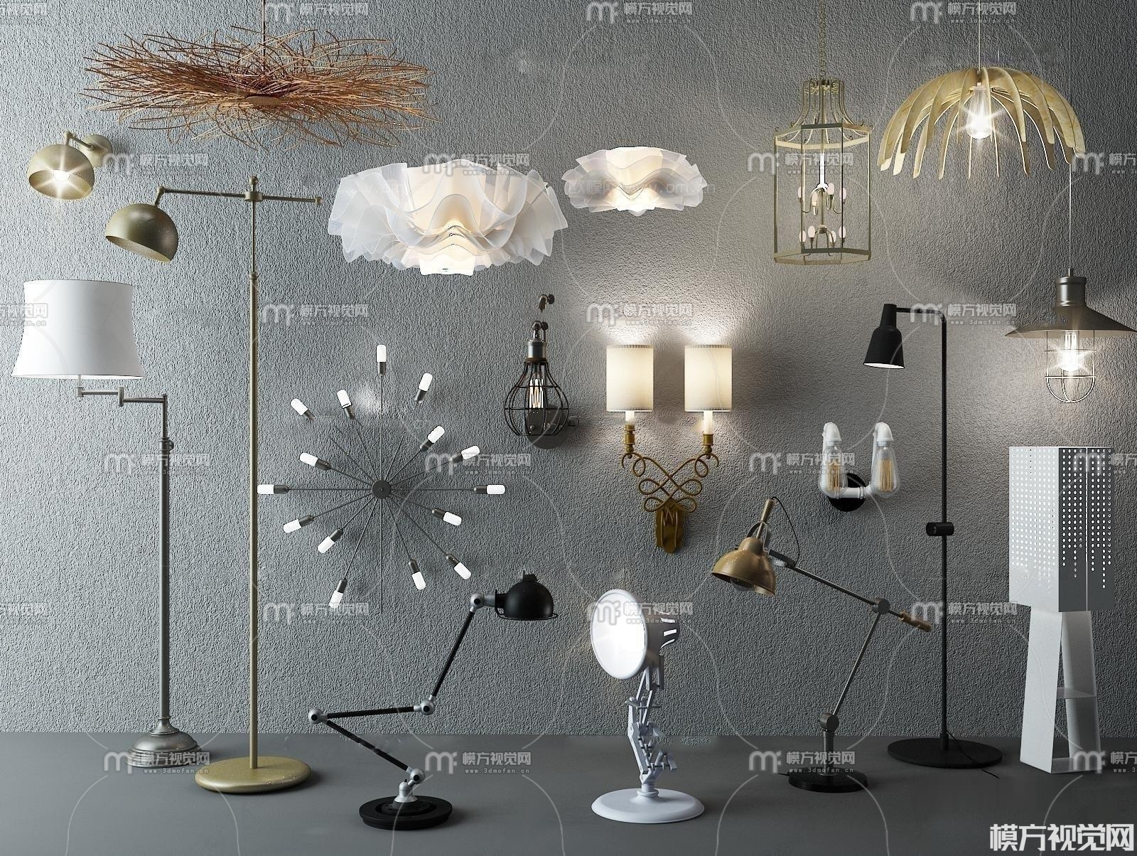 现代吊灯 筒灯 壁灯 组合3D模型(ID:0004155)