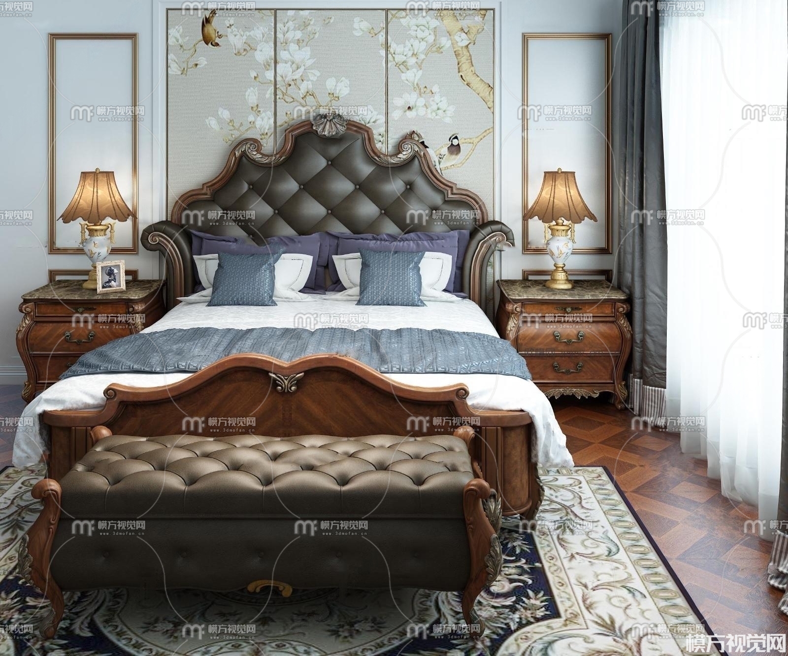 美式双人床3D模型(ID:0004168)