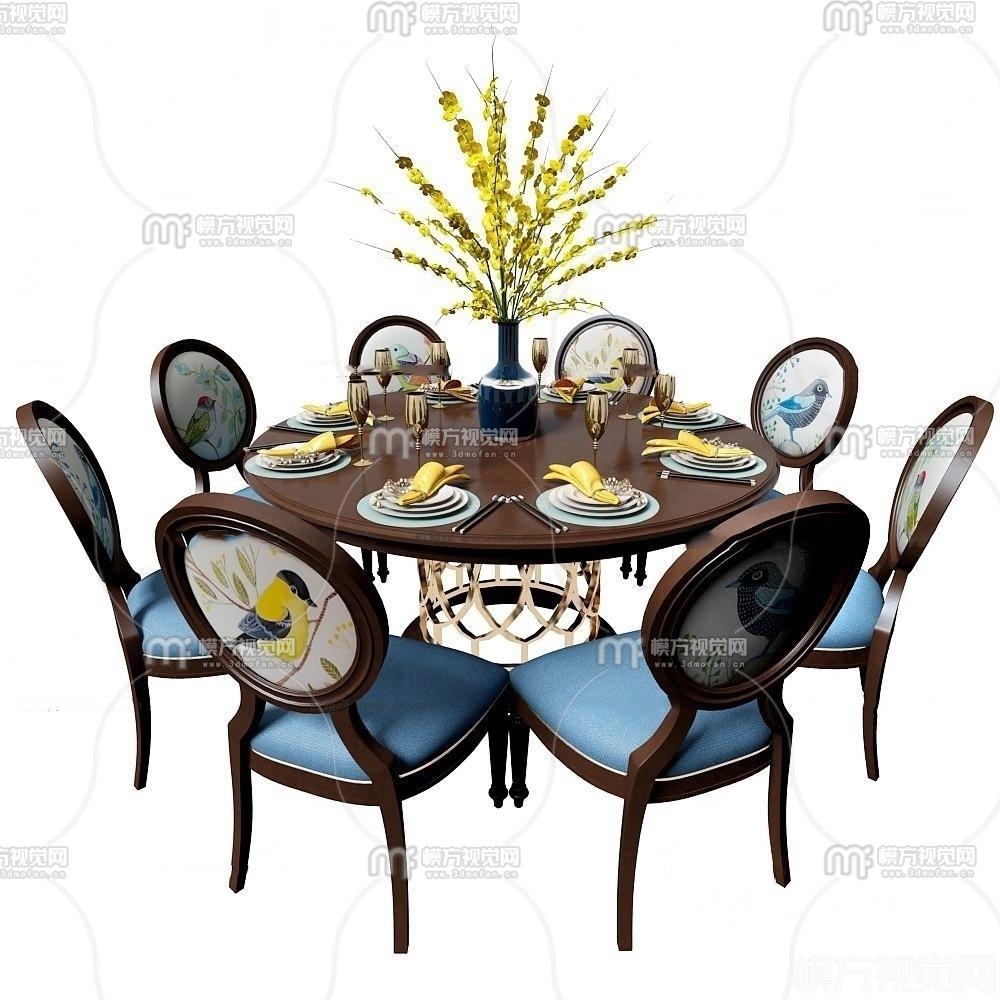 简欧圆形餐桌椅组合3D模型(ID:0000425)
