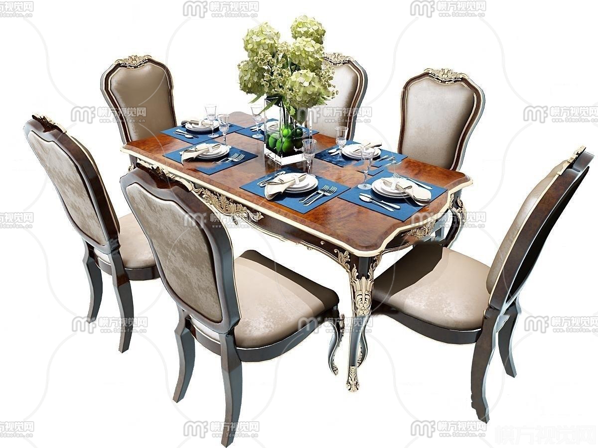 欧式餐桌椅餐具3D模型(ID:0000426)