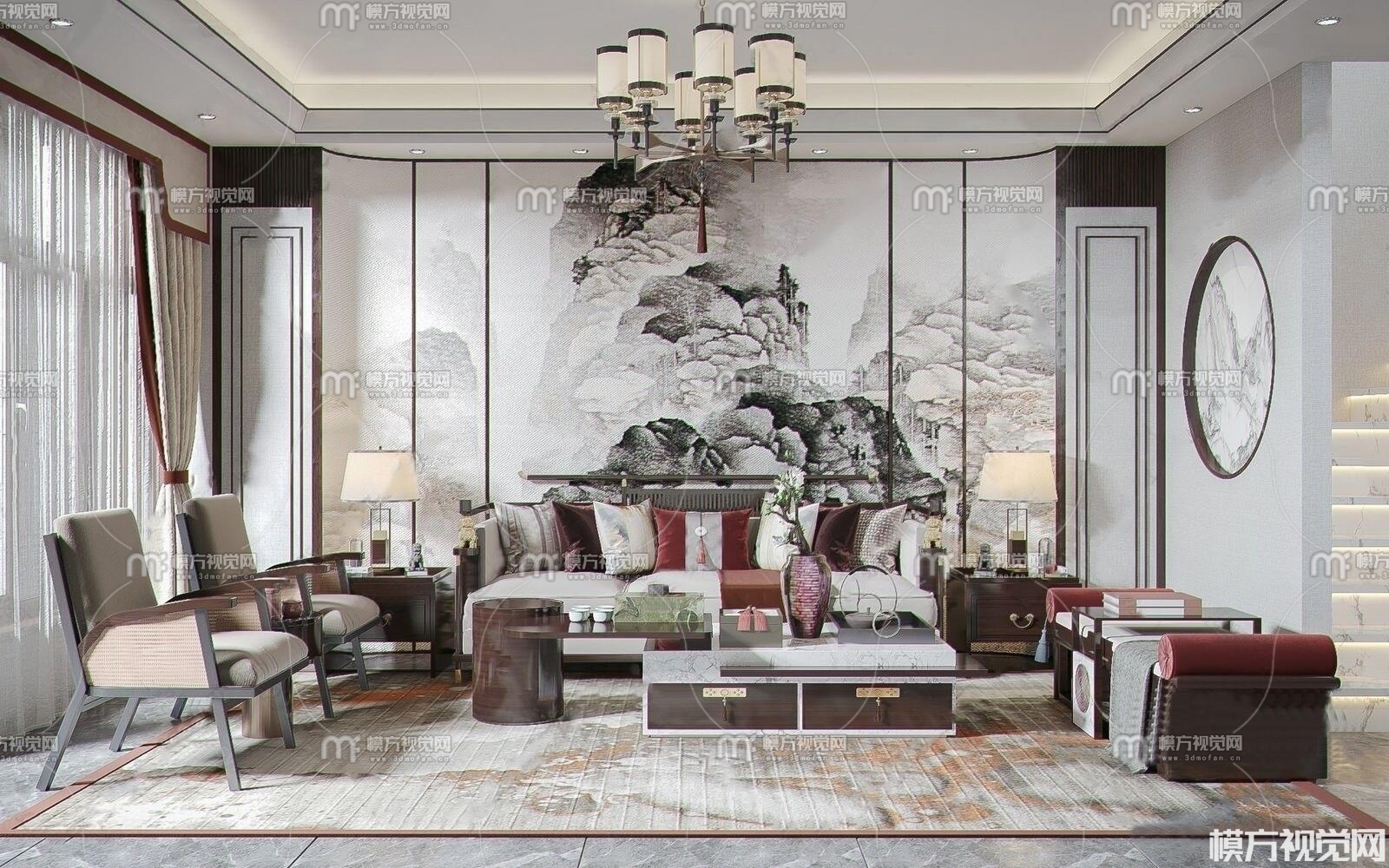 新中式客厅3D模型(ID:0004265)