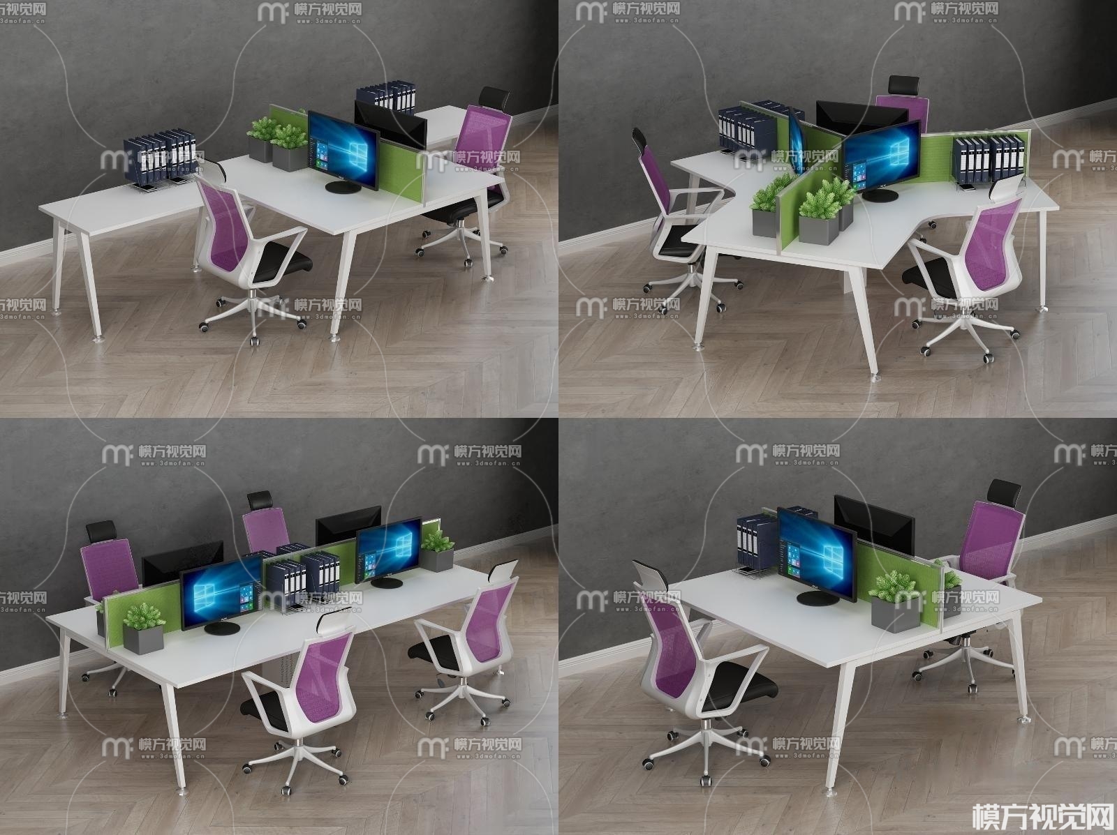 现代办公桌椅卡座组合3D模型(ID:0000440)