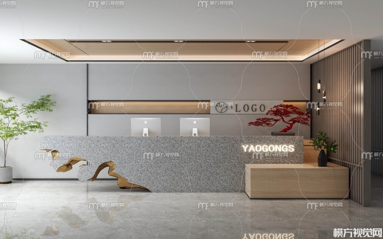 新中式前台接待3D模型(ID:0004478)