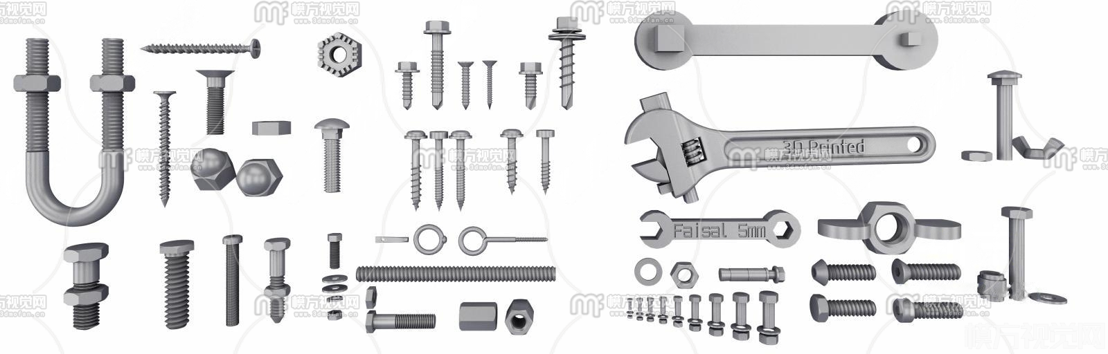 现代螺丝 扳手五金件3D模型(ID:0004490)