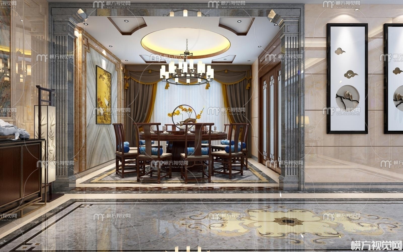 新中式餐厅3D模型(ID:0004493)
