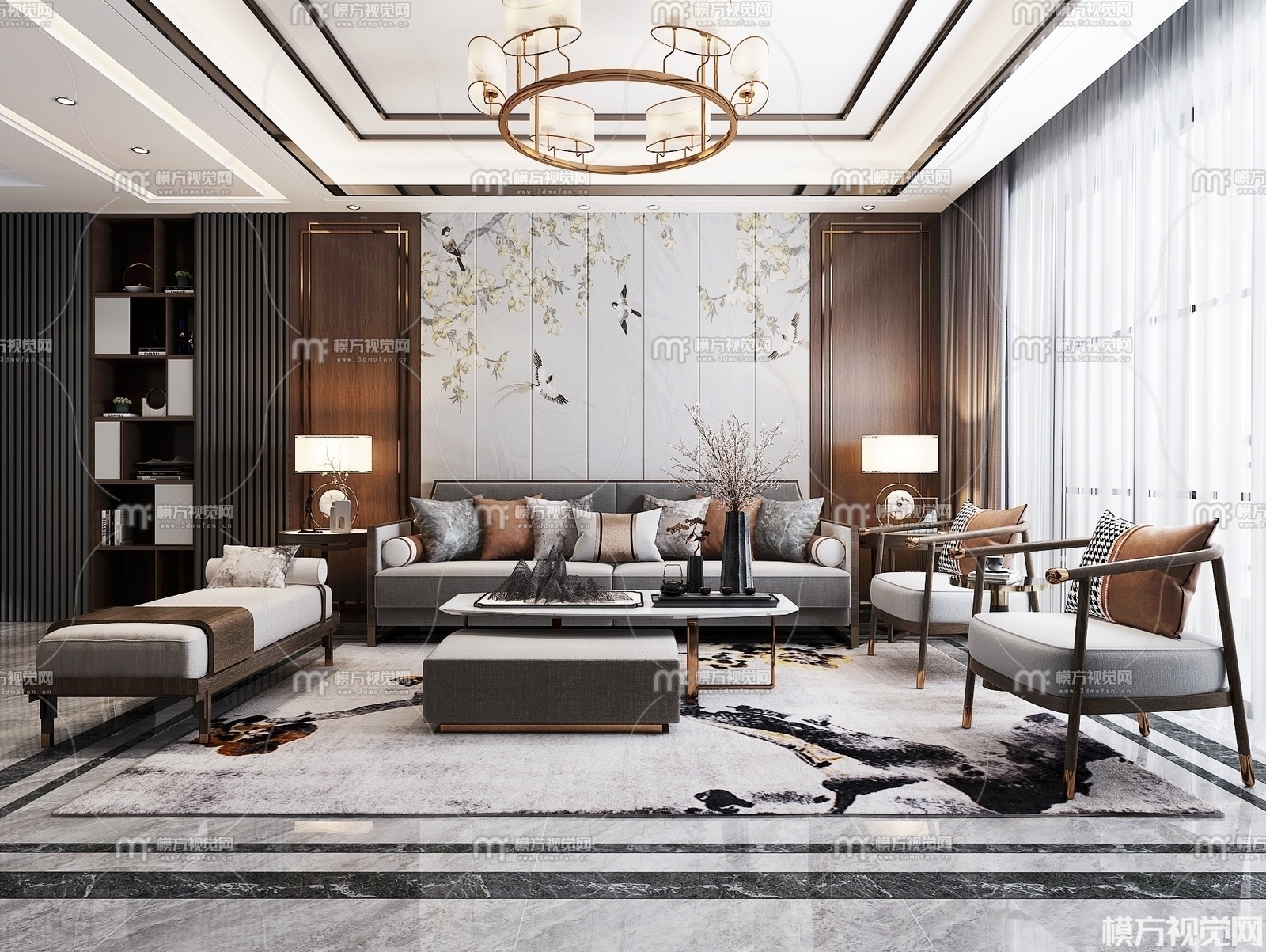 新中式客厅3D模型(ID:0004531)