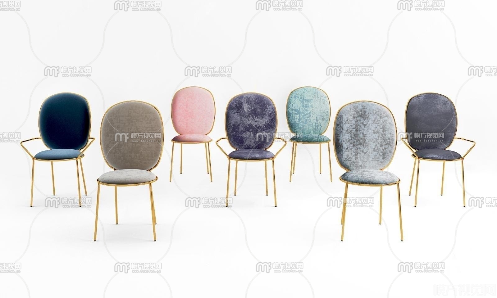 现代金属布艺单椅组合3D模型(ID:0000466)