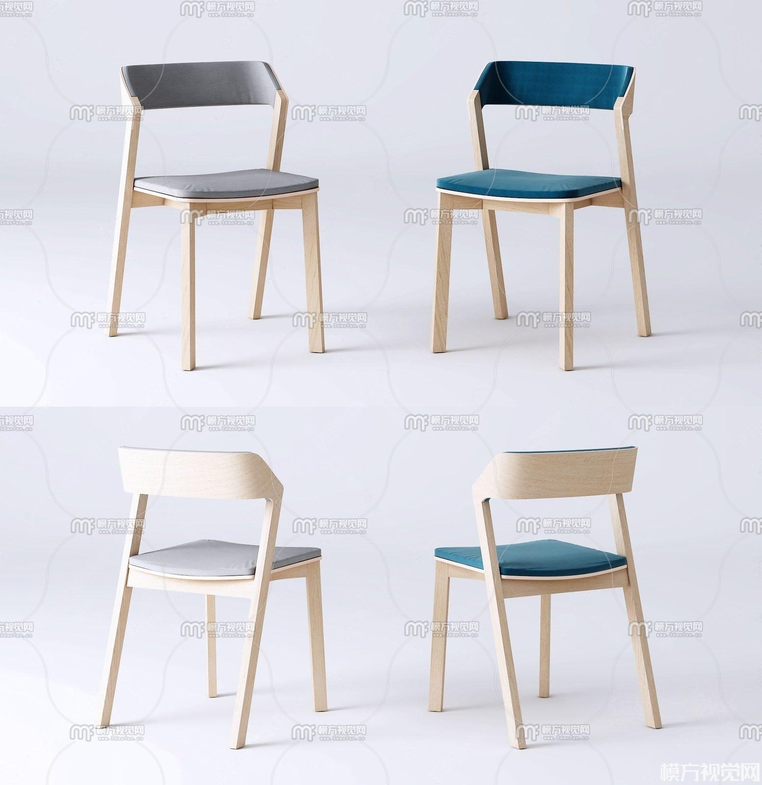 现代木质椅子组合3D模型(ID:0000469)
