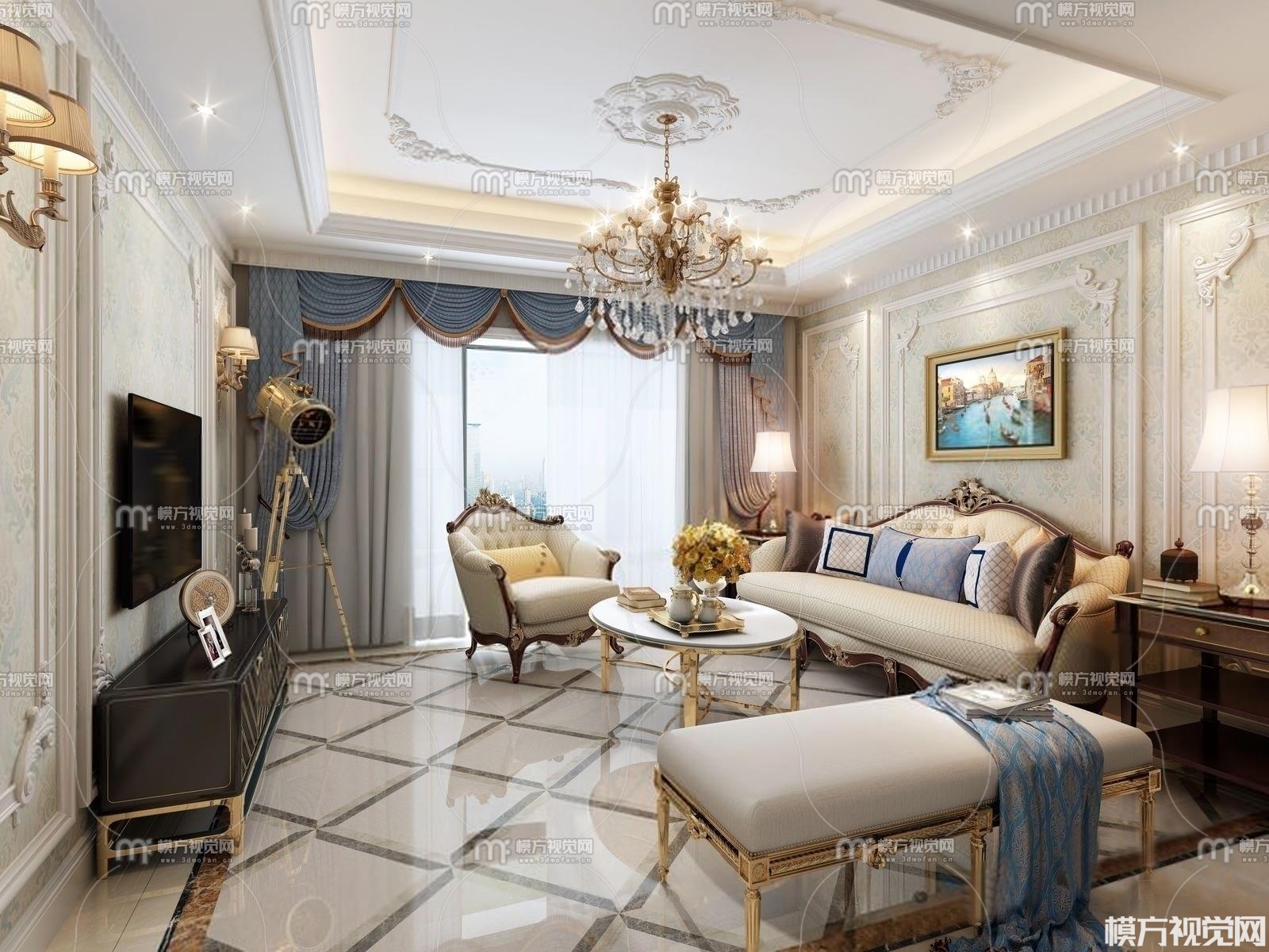 简欧客厅3D模型(ID:0004717)