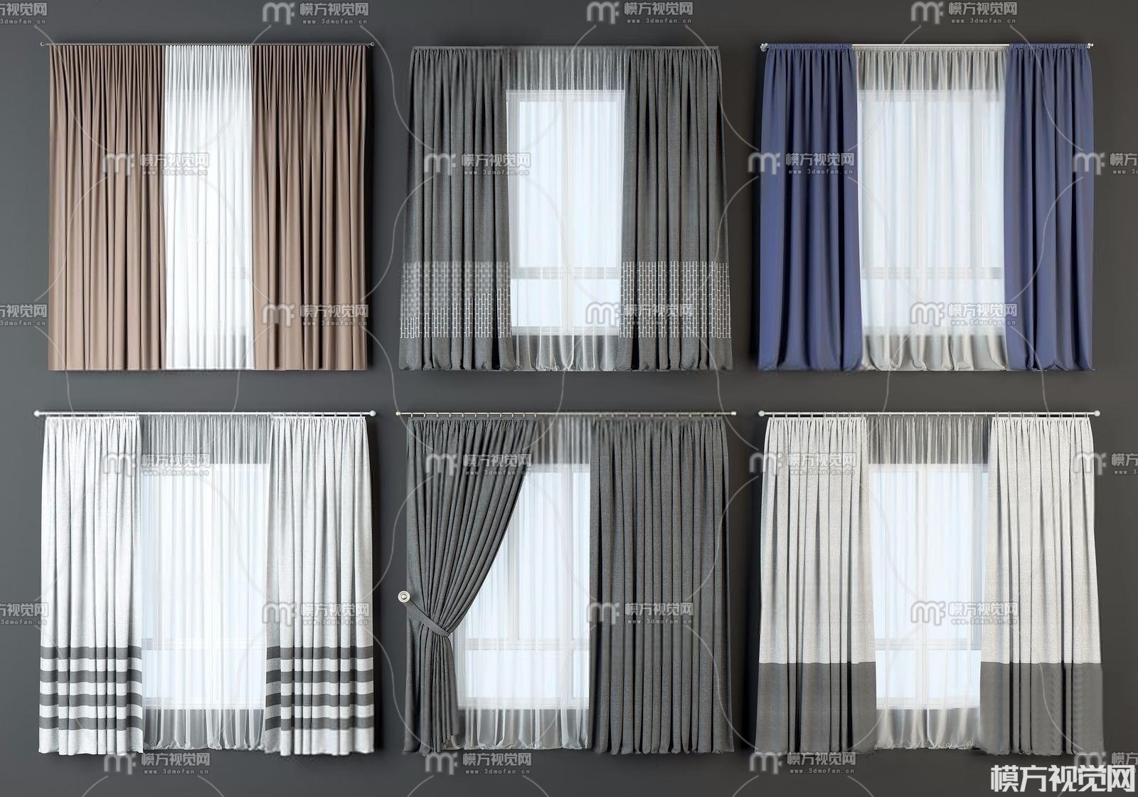 现代窗帘组合3D模型(ID:0004726)