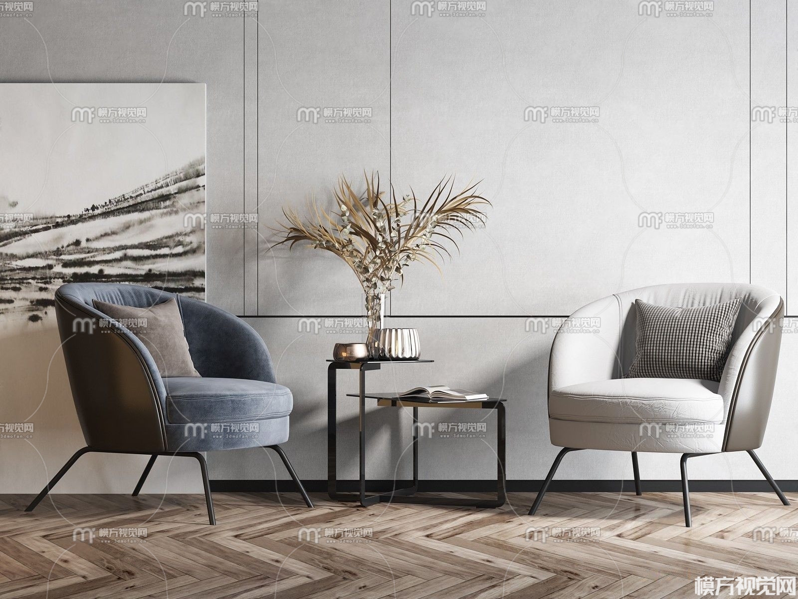 现代轻奢休闲椅组合3D模型(ID:0000474)
