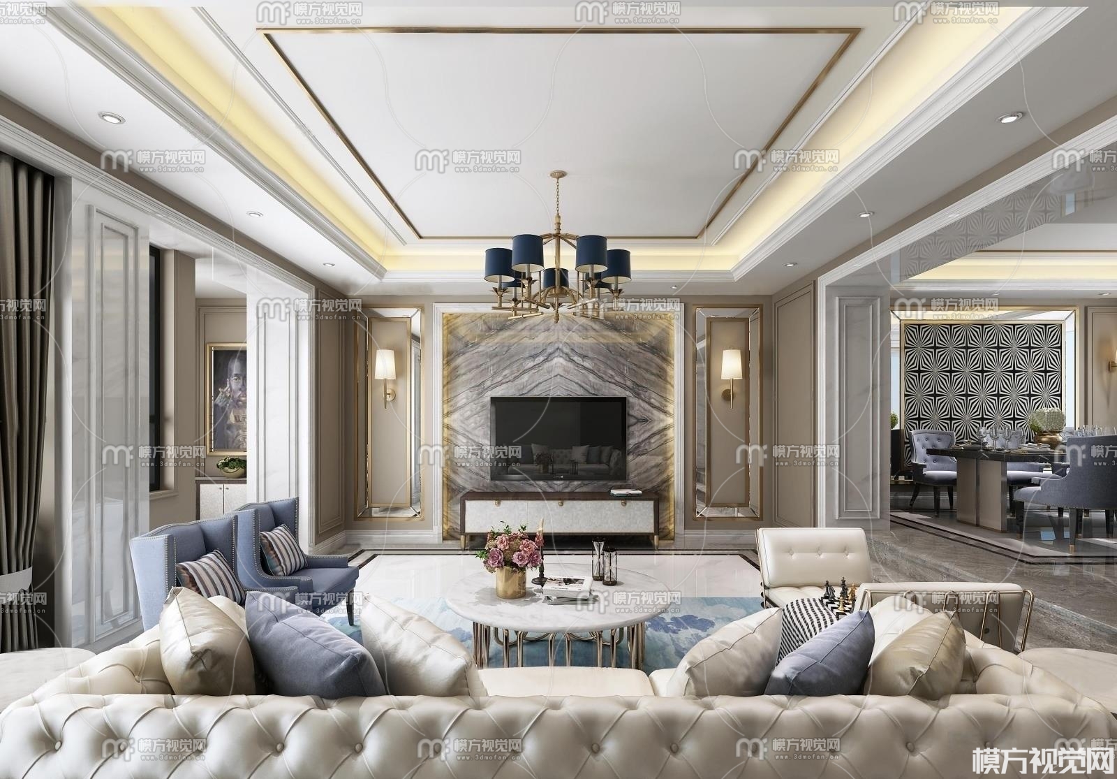 简欧客厅餐3D模型(ID:0004759)