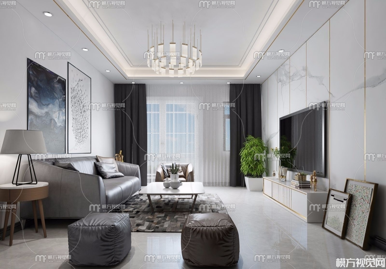 现代客厅3D模型(ID:0004799)