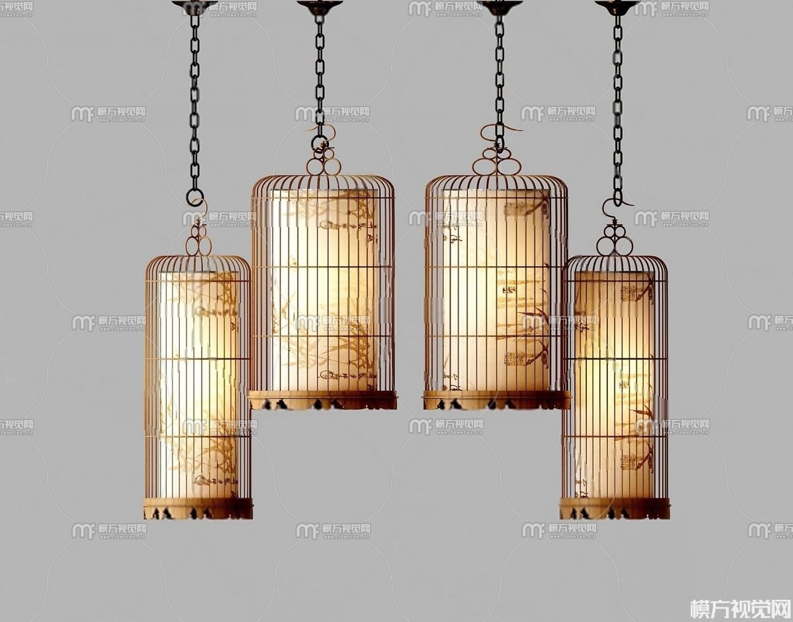 新中式鸟笼吊灯3D模型(ID:0004880)