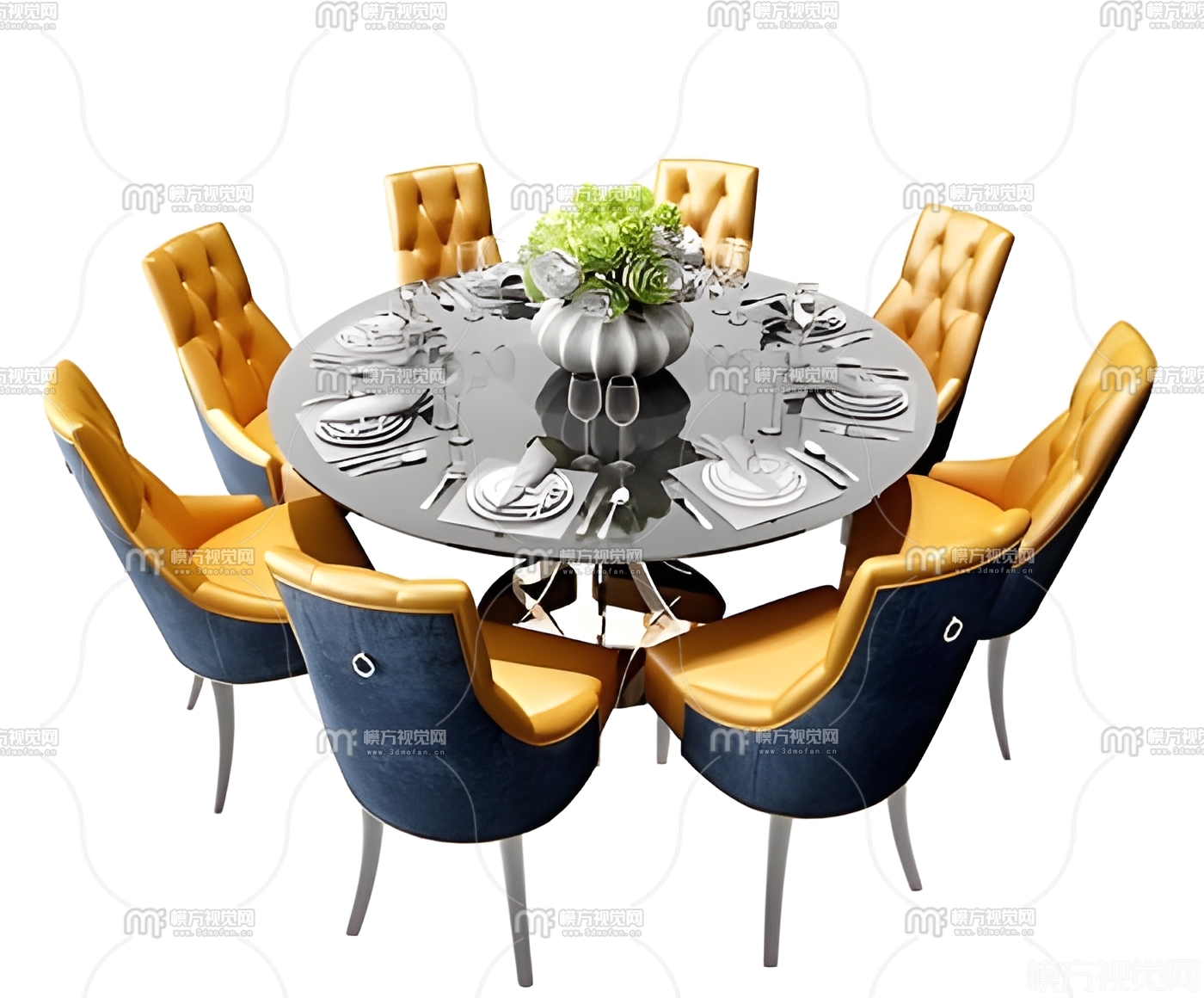 现代圆形餐桌椅组合3D模型(ID:0004934)
