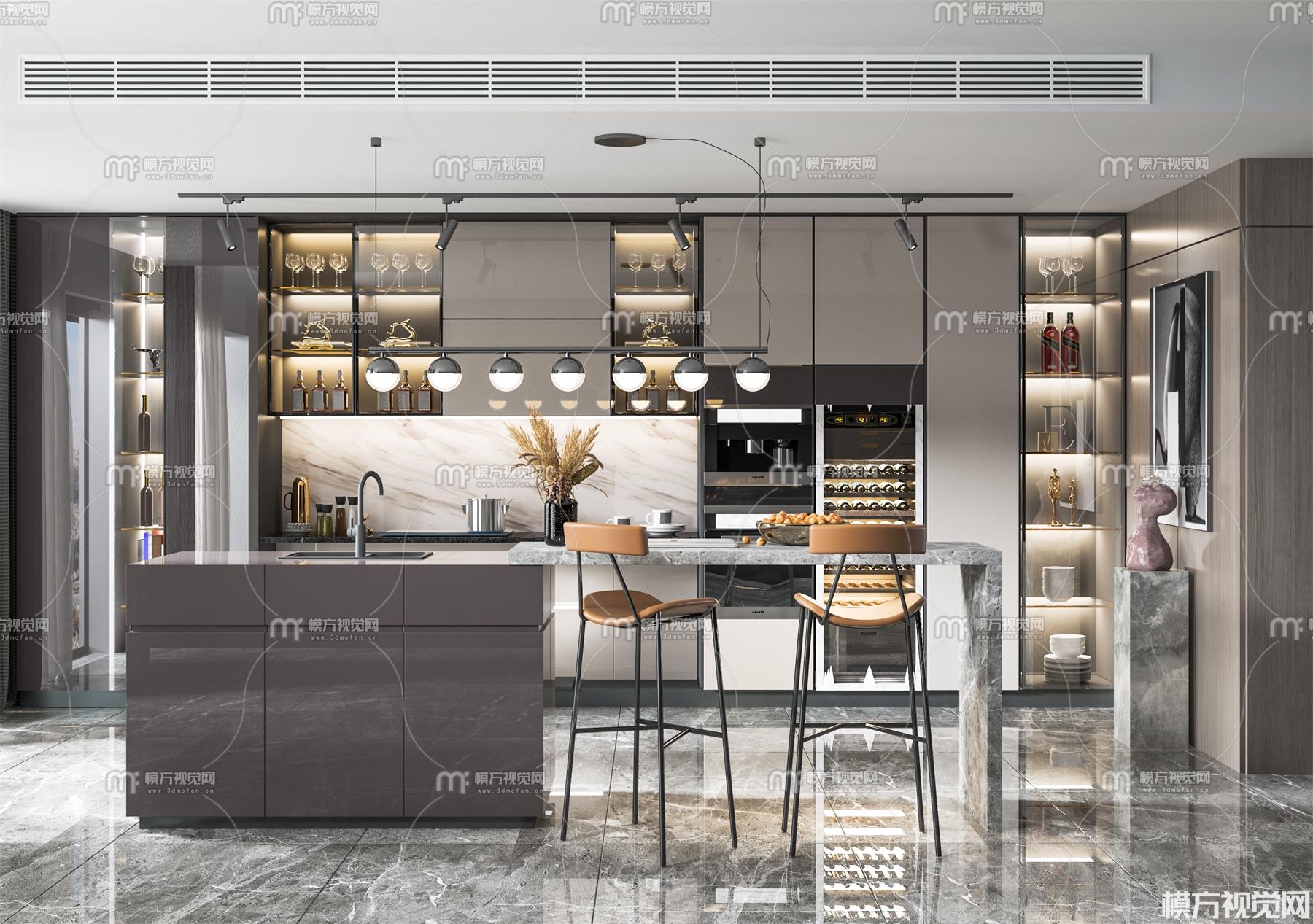 现代轻奢中岛餐厅3D模型(ID:0005001)