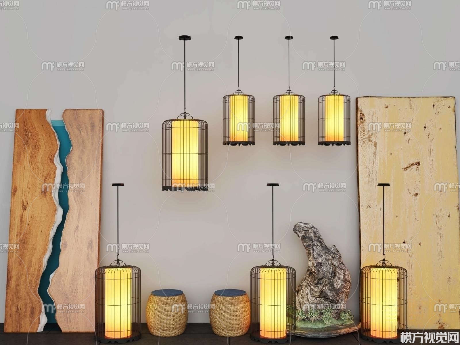 新中式鸟笼灯 木板3D模型(ID:0005026)