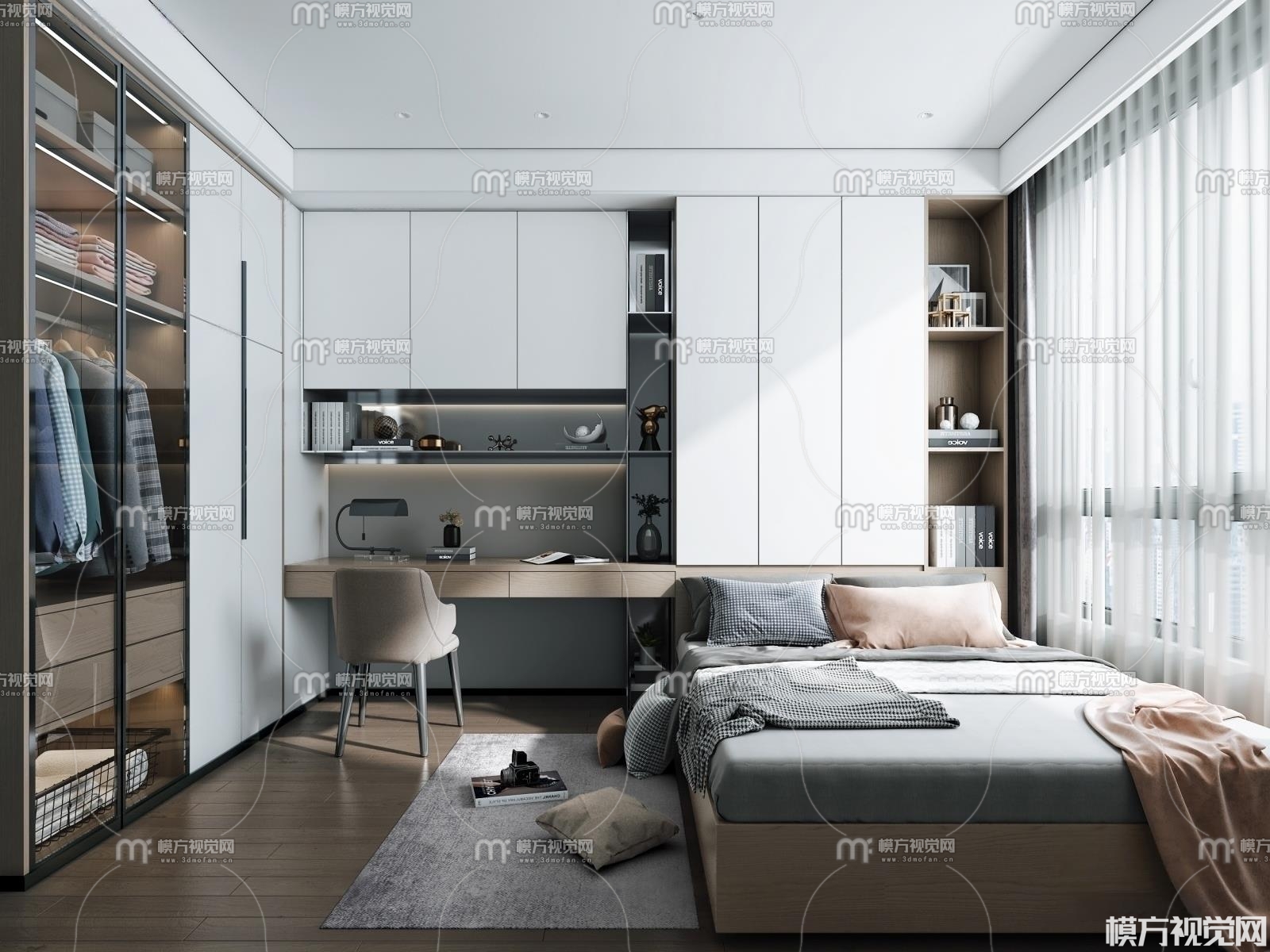 现代榻榻米卧室 书房3D模型(ID:0005060)