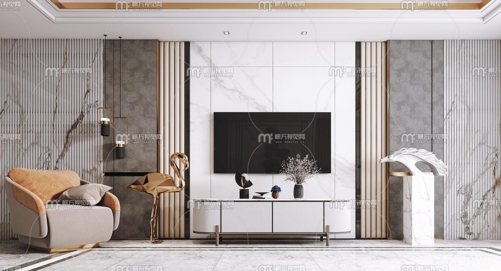 现代电视柜 单人沙发3D模型(ID:0005073)