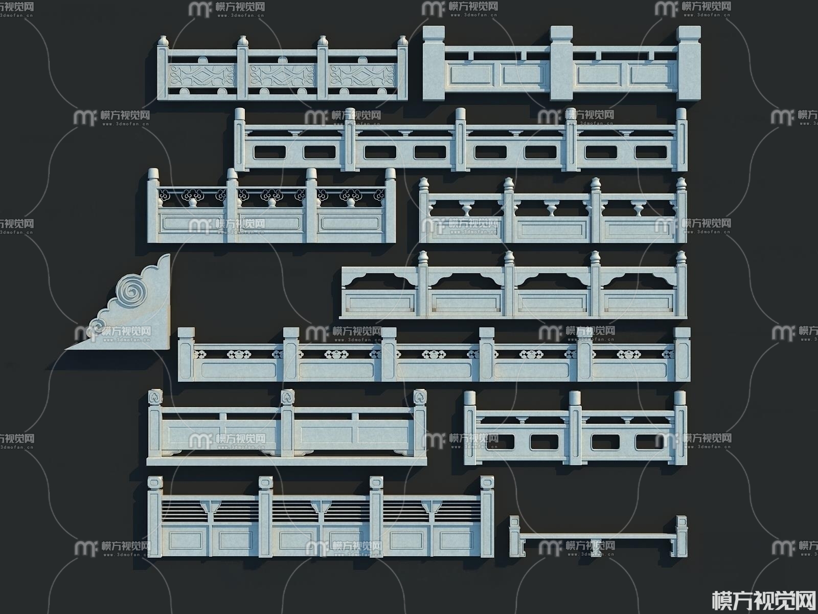 中式汉白玉栏杆护栏围栏3D模型(ID:0005117)