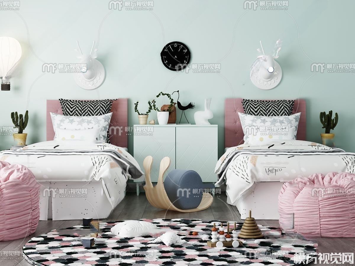 现代儿童床壁灯懒人沙发组合(ID:0005240)