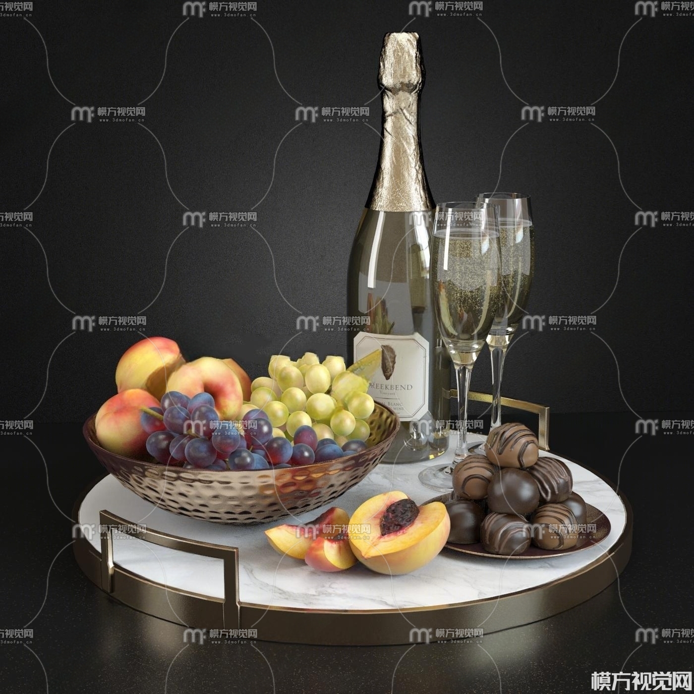 现代红酒葡萄巧克力食物3D模型(ID:0000531)