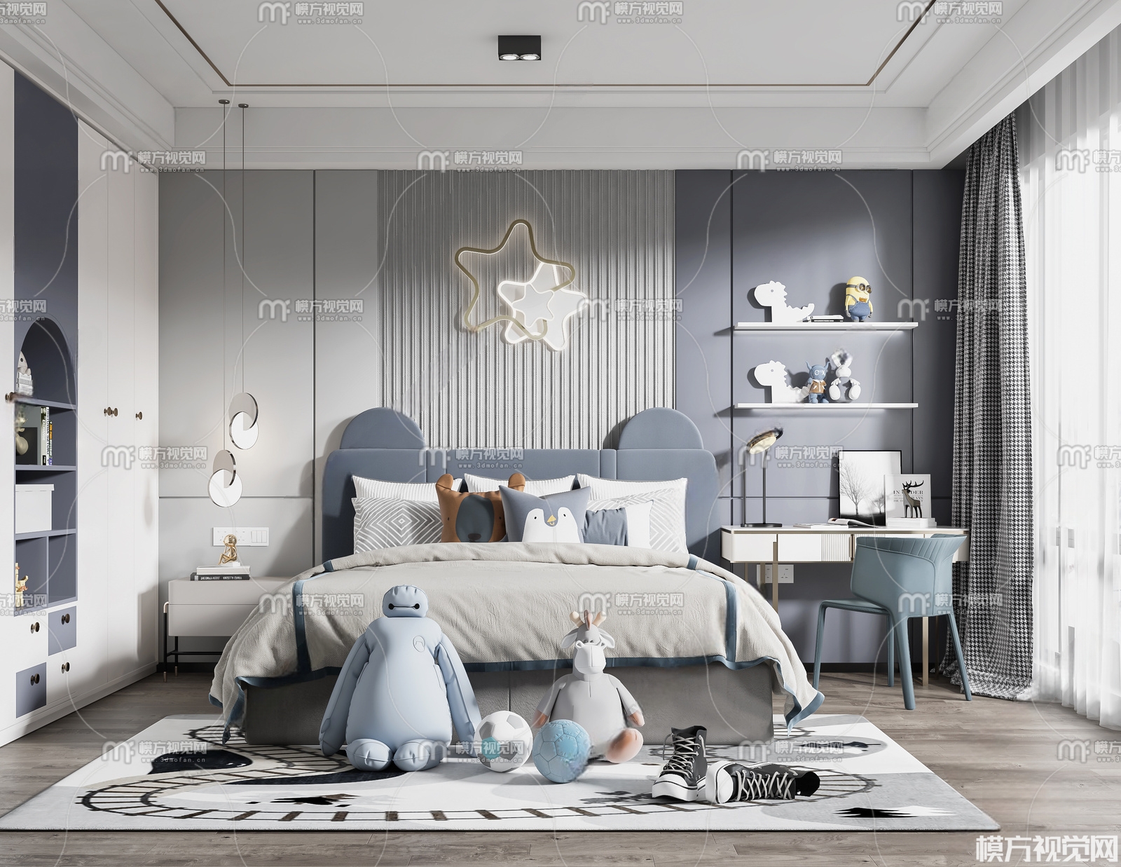 现代男孩房儿童房3D模型(ID:0005367)