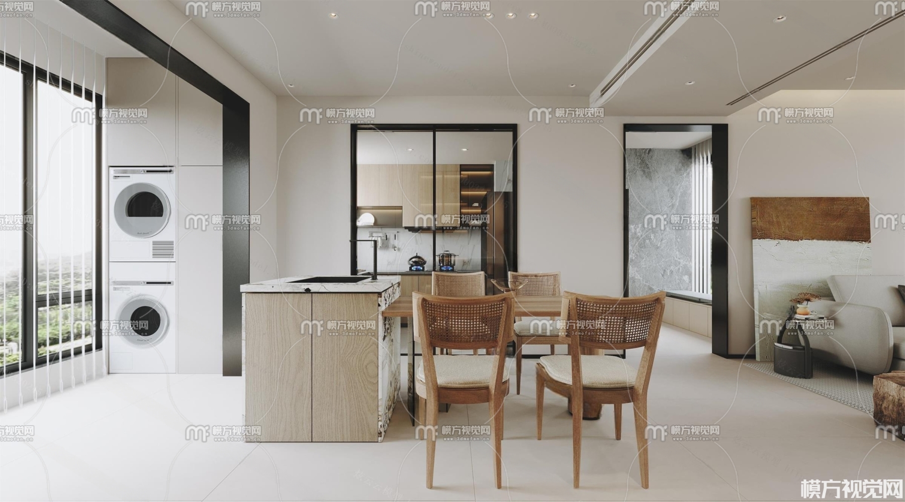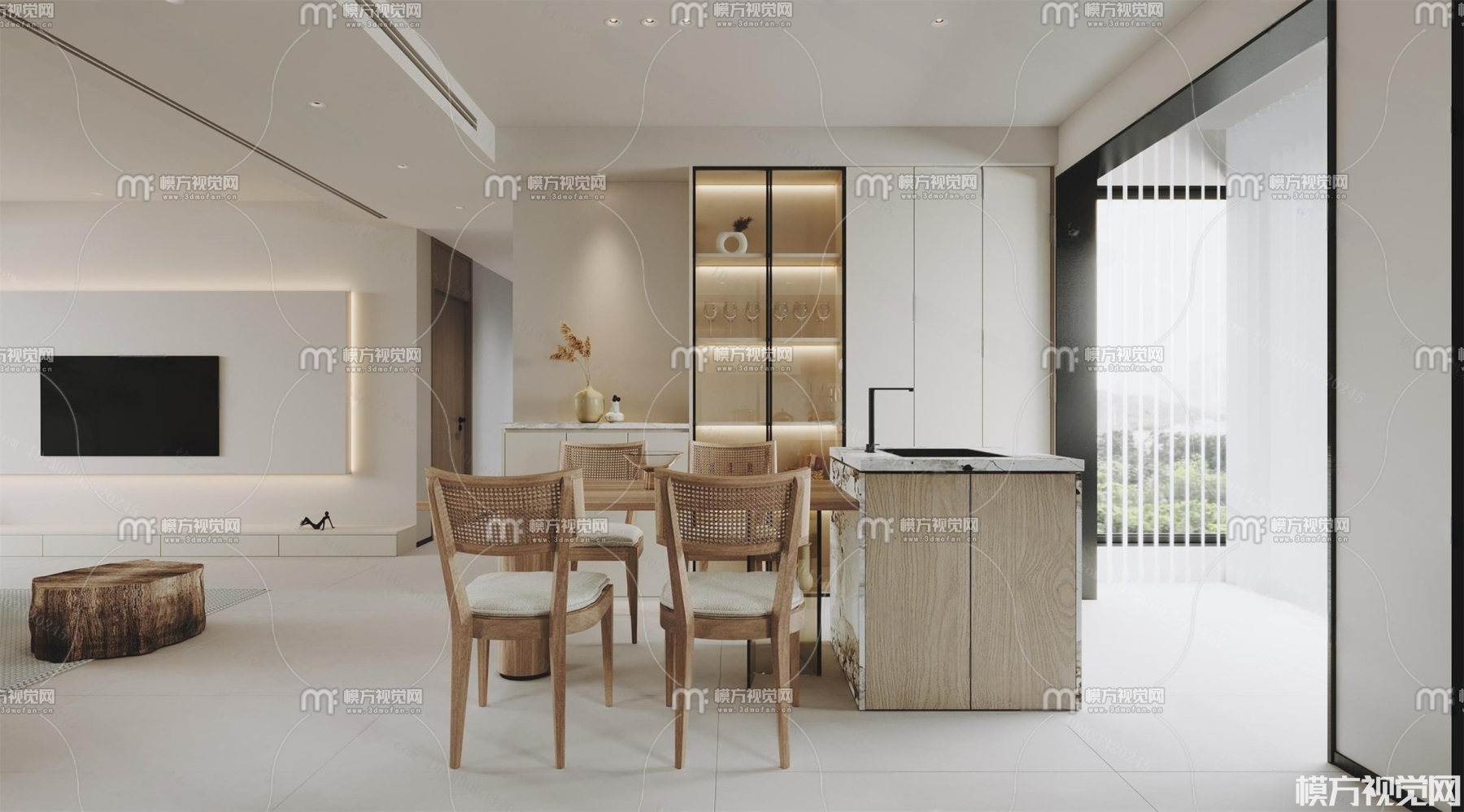 侘寂风客餐厅3D模型(ID:0005469)